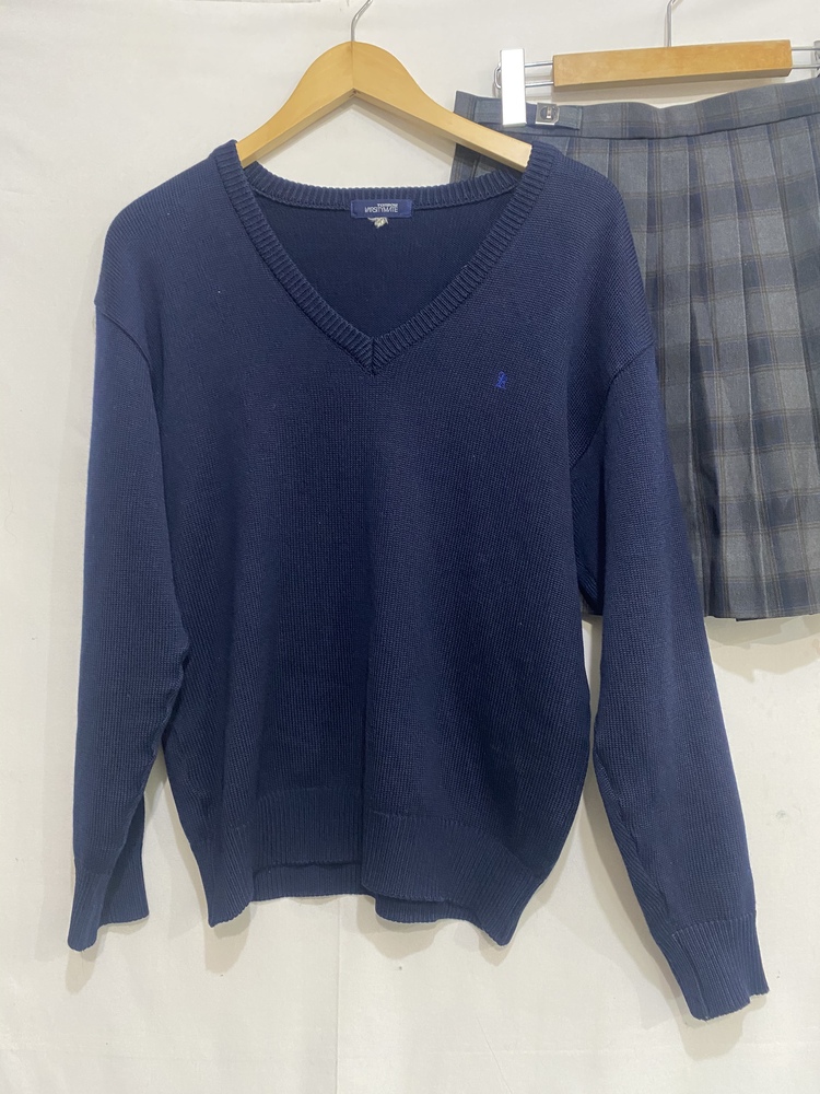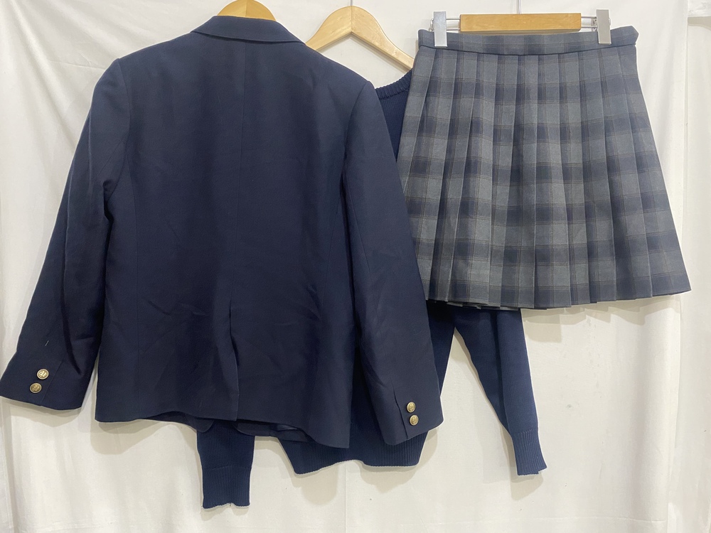 ブレザー、ニットセーター、ネクタイ、プリーツスカート 4点セットです。 中古品です。ご理解のある方にお願い致します。 平置き実寸 ・ジャケット 身幅 約48cm 脇下 着丈 約64.5cm 肩〜裾 ・セーター 身幅 約50cm 脇下 着丈 約68cm 肩〜裾 ・スカート ウエスト 約31cm レングス(全長) 約44.5cm ※多少の誤差がある場合がございます。 |