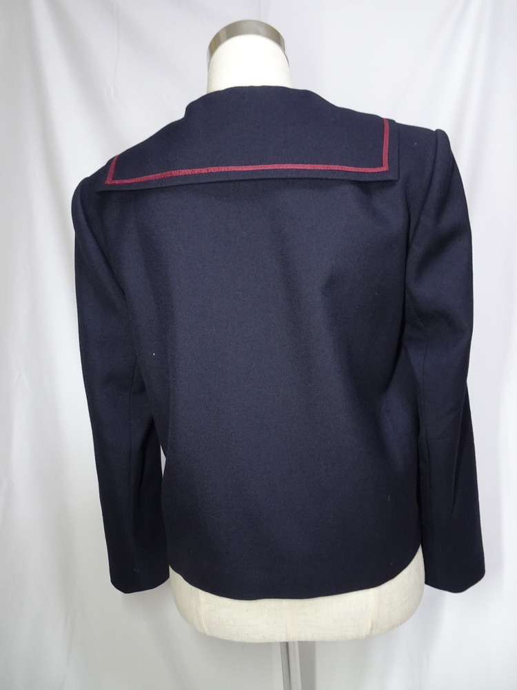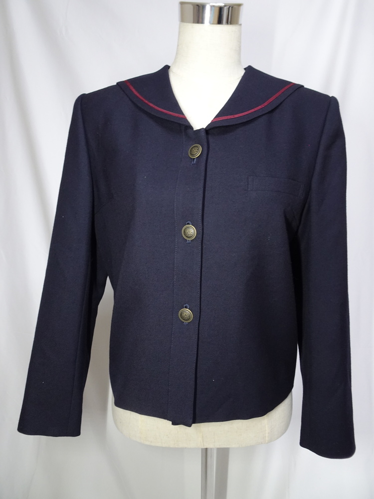 冬服のセーラーブラウス。身頃は一般的な紺色、セーラーカラーは浅く、エンジの1本線です。 サイズは13号とのことですので、普通の男性であれば着用可能かと思います。 よろしくお願いいたします。 |