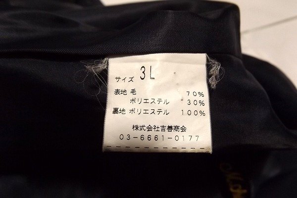 ★サイズは下記です。 ★ブレザー:3L(大きいサイズです) ★実際に計測したところ下記となります。 ★ブレザー:着丈前59後55、肩幅42、身幅52、袖丈52 状態:着用感はあまりなくきれいです。織ネームが入っております。 |