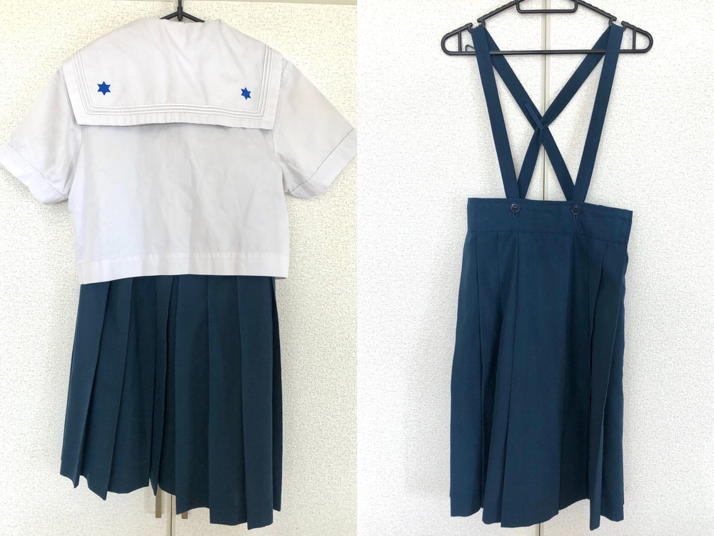 【修猷館高校】夏服セットになります♪ ◇◆出品内容◇◆ ・セーラー 肩幅41身幅50着丈42袖丈21 ・ジャンパースカート(指定外) ウエスト67-70総丈63 以上3点です。 ※素人採寸のため、多少の誤差はご了承ください。 ◇◆状態◇◆ ・使用に伴う汚れ、黄ばみ、着用感があります。 ※3年間着用した制服であることをご理解できる方のみ入札をお願いします。 ◇◆送料◇◆