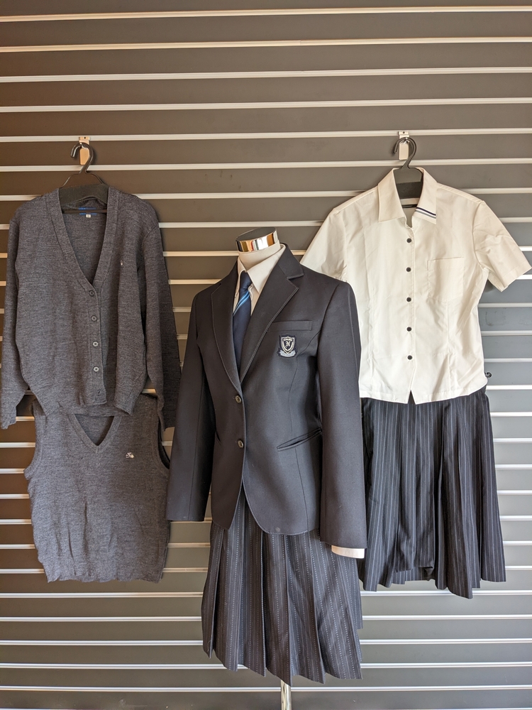 【商品内容】 1.ブレザー : Mサイズ 着丈60cm 肩幅41cm 身幅46cm 袖丈56cm 2.長袖ブラウス : Mサイズ 着丈63cm 肩幅40cm 身幅43cm 袖丈58cm 3.半袖ブラウス : Mサイズ 着丈55cm 肩幅39cm 身幅45cm 袖丈21cm 4.冬スカート : W 63cm × ベルト下丈 56cm 5.夏スカート : W 63cm × ベルト下丈 56cm 6.ニットベスト : Mサイズ 7.カーディガン : Mサイズ 8.ネクタイ ※素人採寸のため誤差はご了承下さい。 【商品の状態】 ユーズド品 ユーズド品のため傷み、ほつれ、汚れなど使用感はご了承ください。 長期保管品のためシワや細かな状態などご了承ください。 ※その他、様々な状態があるとお考え下さい。 【注意事項】 ・商品状態はできるだけ確認し説明していますが、個人的な主観であり説明しきれない細かな状態や見落としなどがある場合がございます。 ・画像の色味は、光の反射やモニターの環境により多少異なって見える場合もあります。 ・ノークレームノーリターンでお願いします。 ・中古品ですので、完璧な美品を求める方や神経質な方は入札をご遠慮ください。 |
