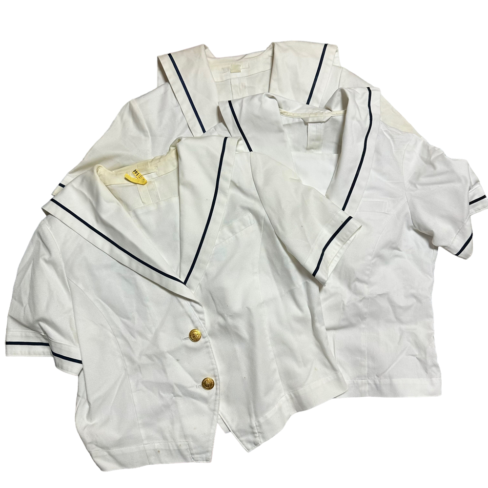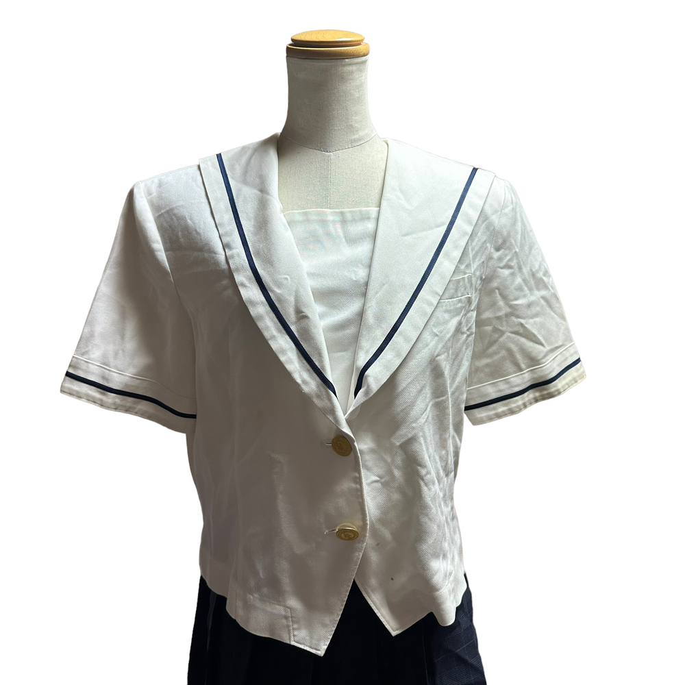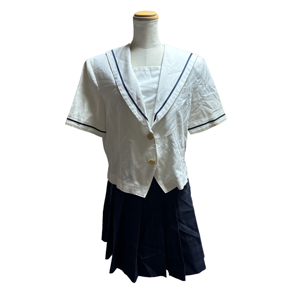 新規の方、ご入札の際御連絡頂きましたら幸いです。 新規の方の入札があり御連絡がない場合、削除させて頂きます。 最近、御連絡無い方が多いので御理解の程よろしくお願い申し上げます。 岡山県立芳泉高等学校夏服です。 セーラーブラウス3点、スカート2点 合計5点セットです。 ブラウスの1枚、襟に刻みが御座います。 シミも御座います。 画像にてご確認下さいませ。 サイズ セーラーブラウス 身幅 52センチ 着丈 48センチ 肩幅 44センチ 袖丈 25センチ スカート ウエスト66センチ 丈50センチ ウエスト69センチ 丈53センチ |