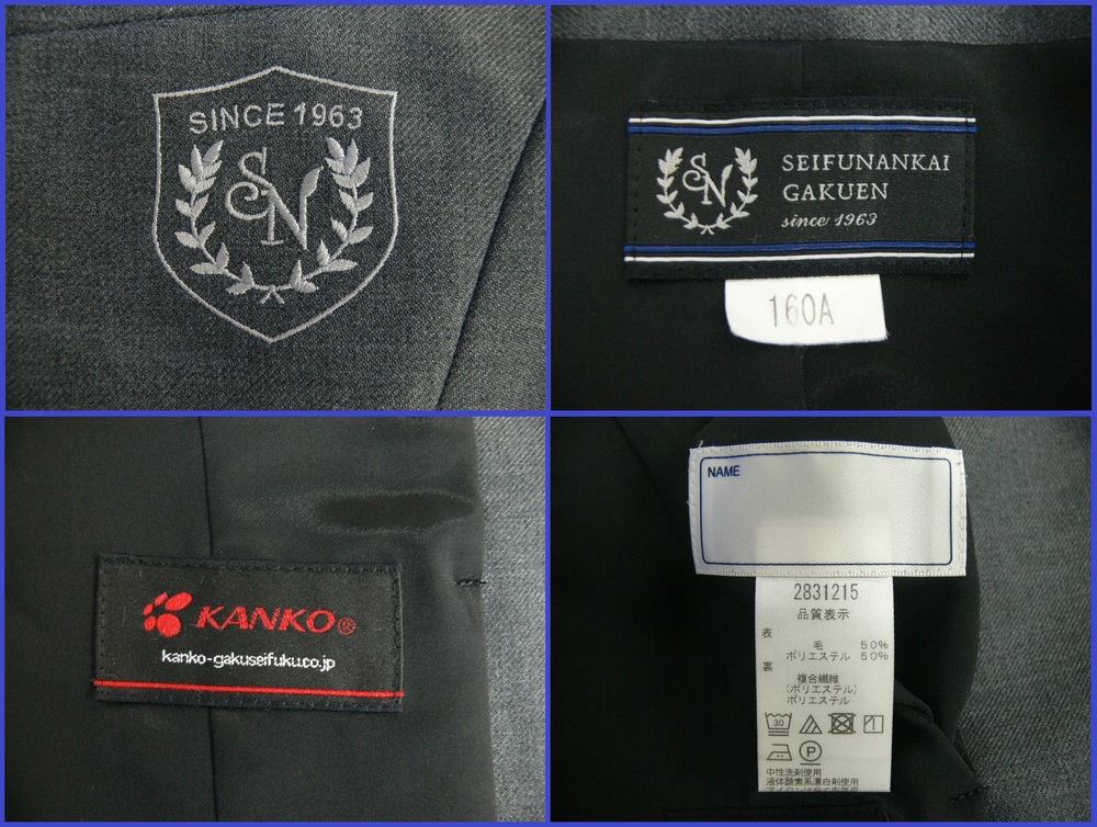 ●清風南海中学校・新型制服● ●商品説明 ・グレーのボレロ調ジャケット、長袖セーラーブラウス+裾にブルーのラインが入った濃紺冬スカート ・オフホワイトのカーディガン、ベスト ・半袖セーラーブラウス+同じくブルーライン入りの濃紺夏スカート ・ ・ ・ ・ 以上すべて指定品のセットです。 ●サイズ 肩幅(ジャケット)39(ブラウス)38 バスト(ジャケット)96(ブラウス)96 着丈(ジャケット)51(ブラウス)56 袖丈(ジャケ)57(長袖ブラウス)56 スカートウエスト(冬)58〜62(夏)58〜62 スカート丈(冬)56(夏)56 ●品質ランク B ・若干の汚れ等ありますが全体的に程度良好です。 ・ ・ ●お取引に関して ・目安として落札後1週間を目途にお振込みお願いいたします。 ・1週間が経過してもお振込みもご連絡もない場合落札を取り消しいたします。 (年末年始、ゴールデンウイーク、お盆など長期休暇時を除く) ・ヤマト宅急便にて発送いたします。 送料は全国一律700円です。 ・基本的にご入金確認後1〜2日で発送いたしますが、 上記の長期休暇時は4〜5日程度お時間いただく場合があります。 それ以外にも発送までにお時間いただくことがあるかもしれません。 そのときは事前に告知いたします。 ・評価にマイナスのある方の入札があった場合、その内容をよく検討し、 削除が相当と判断した場合は予告無く削除することがあります。 ・ ・ |