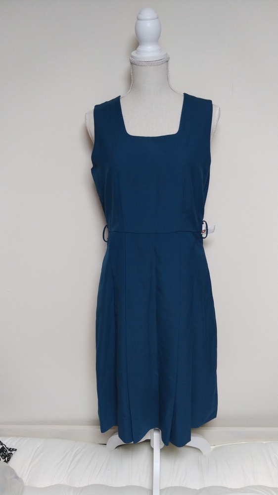 不明ジャンパースカートの単品です。 肩幅31cm 身幅45cm ウエスト81cm 着丈103cm ベルトはありません。 脇下にボタン留めの仕様で ファスナー無しです。 |