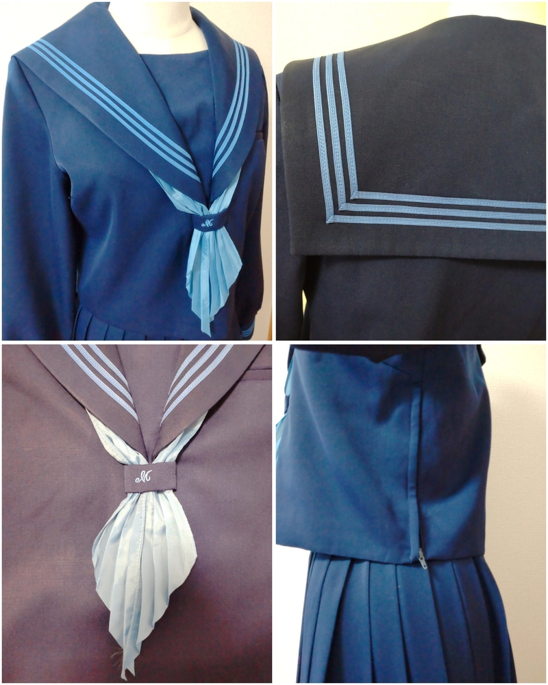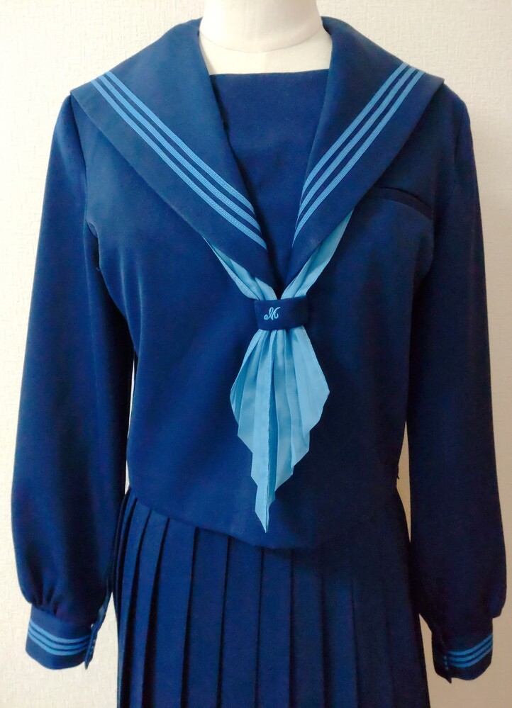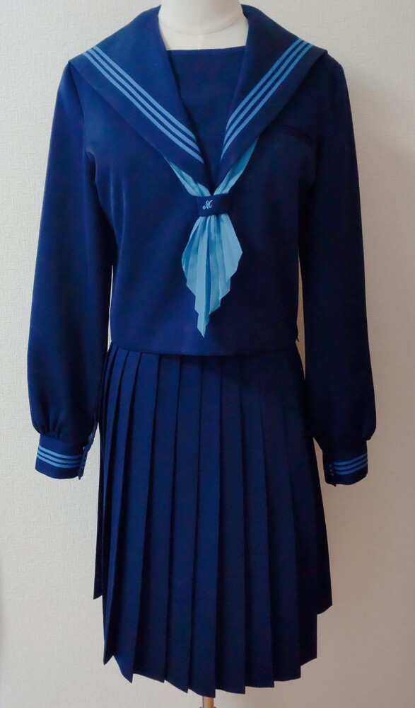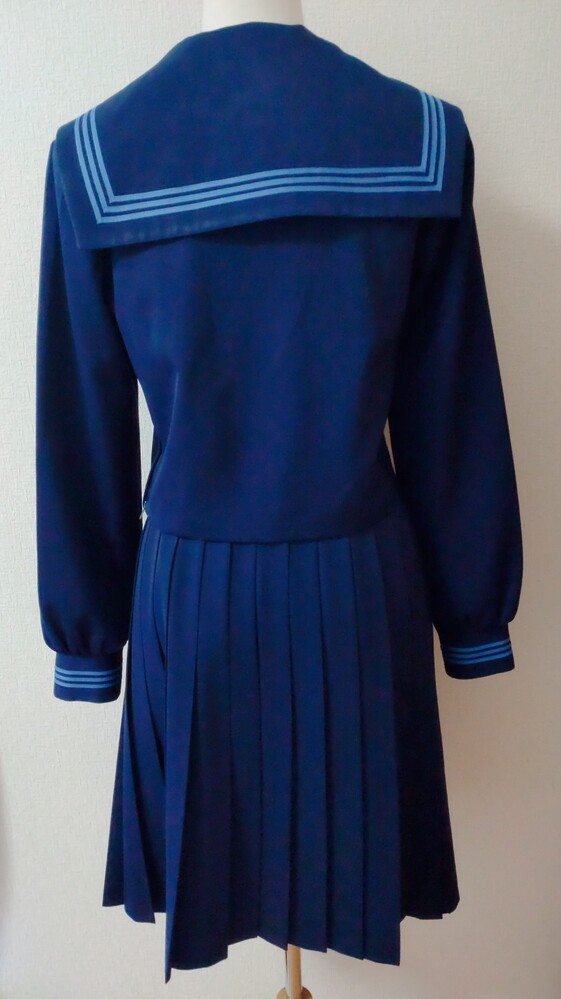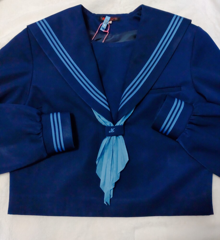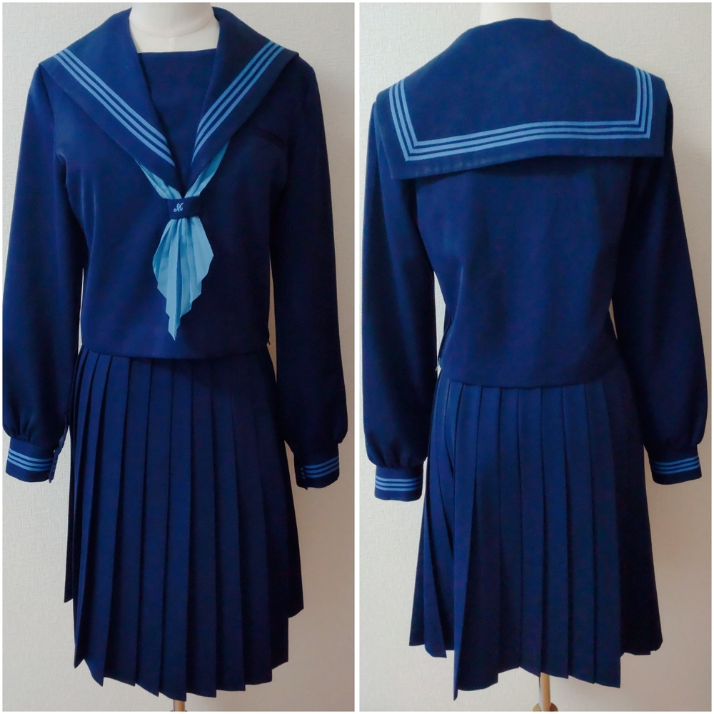 花紺に水色ラインが可愛いすぎる高知南中学、高校の制服です。 2022年に廃校となり、現在高知国際高校となっているようです。 高知南中学、高校のセーラーはかなり可愛いデザインで人気のセーラーです。 特にこちらの冬服の上下花紺に水色ラインはめちゃくちゃ可愛いすぎます(*^^*) 全て平置きでの採寸になります。 身幅、ウエストは2倍でお考えください。 素人の採寸ですので、多少の誤差はお許しくださいm(_ _)m 【冬服セーラー】 9号 着丈45cm 肩幅38cm 身幅47cm 袖丈60cm 花紺に鮮やかな水色の3本ラインの可愛いセーラー服です。 かぶりタイプ、横ファスナーです。 スカーフホールにM刺繍あり。 袖などにテカリあり。 記名あり。 【夏用スカート】 ウエスト32〜36cm(アジャスターで調整可能) 着丈56cm(ベルト含む) タグにはウエスト69、丈60と記載あり。 花紺のプリーツスカートです。 全体にテカリあり。 ウエスト辺りにかなり小さな引っかけ跡のような小さな穴がありましたが、見失ってしまいました。 記名あり。 【スカーフ】 水色の指定外スカーフです。 指定スカーフを真似て形を造ってみました。 発送 ゆうパック80サイズ ご検討よろしくお願い致します(*^^*) |