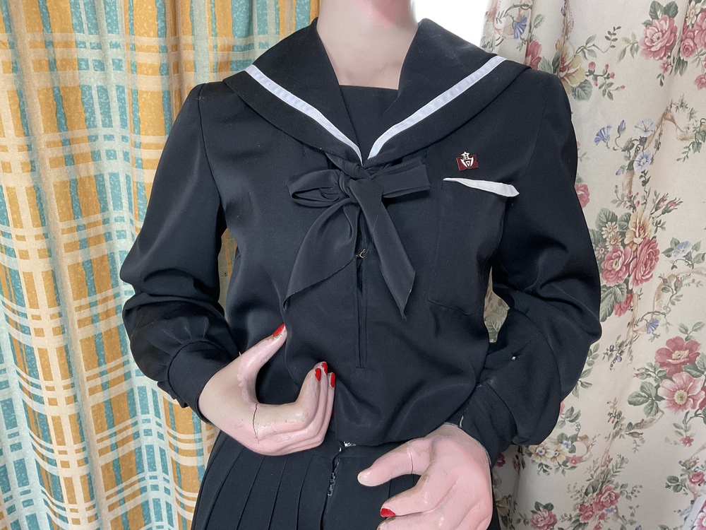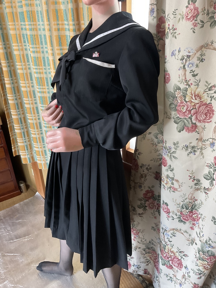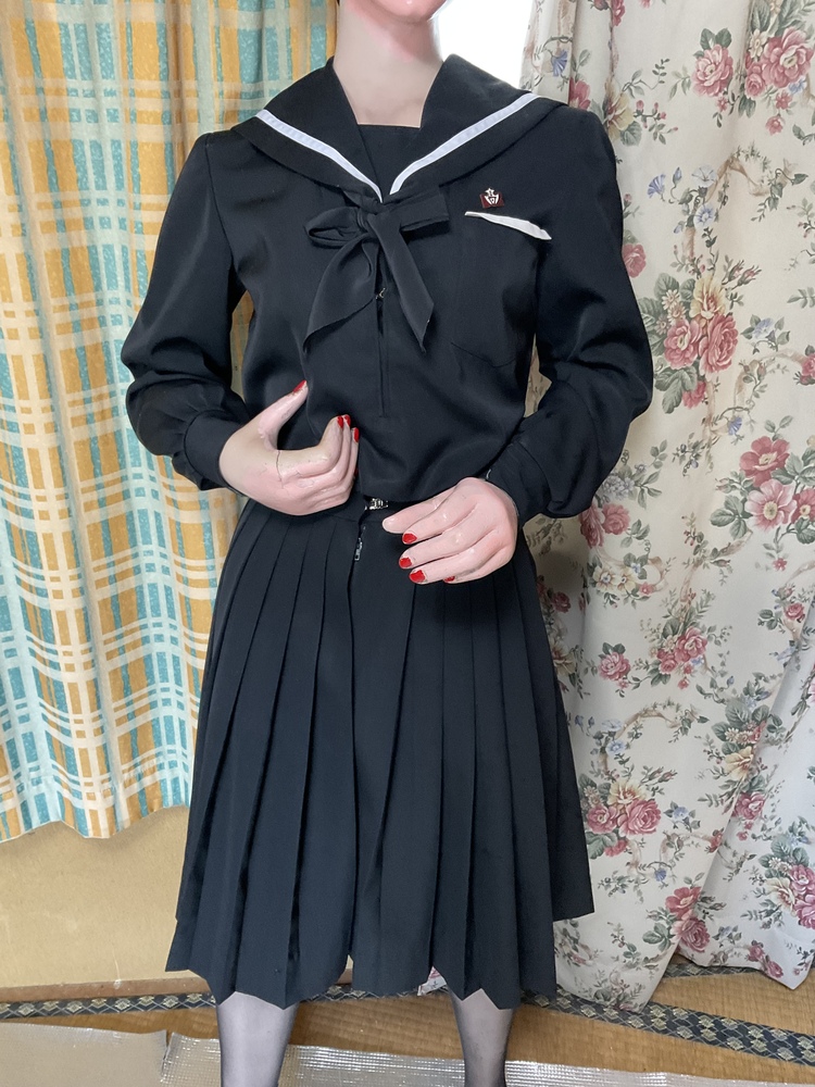 愛知県豊田市(稲武町)で譲り受けた物です。 光沢のある黒い制服、学生は当時、山間部の学校でも有り、ストッキングを 履いて通学していました。 バッチ付き、スカーフの縛り方が分からないのであやふや ですが、中古品にしては綺麗だと思います。 サイズは、Sサイズです。 ご希望の方が有れば、当時、着用していた本人の お写真もあります。 モデルは、当社専属モデルの楓ちゃんです。 よろしくお願いします。 |