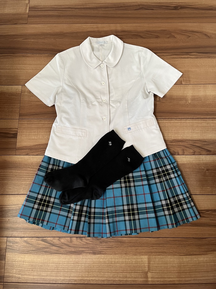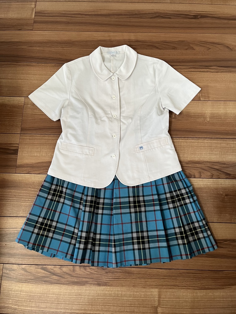 ブラウスとスカートと指定ソックスのセットです。 サイズはブラウスが身幅43センチ、丈48センチ スカートは平置き実寸でウエスト33センチ、丈53センチです。 状態は良好です。 60サイズのダンボール箱に衣類表記で発送致します。 |