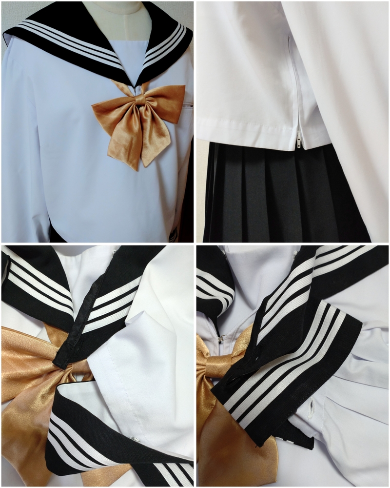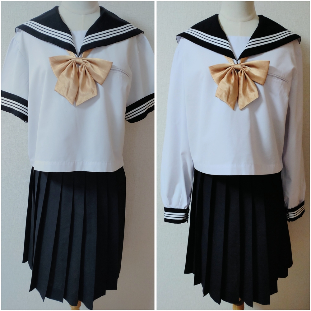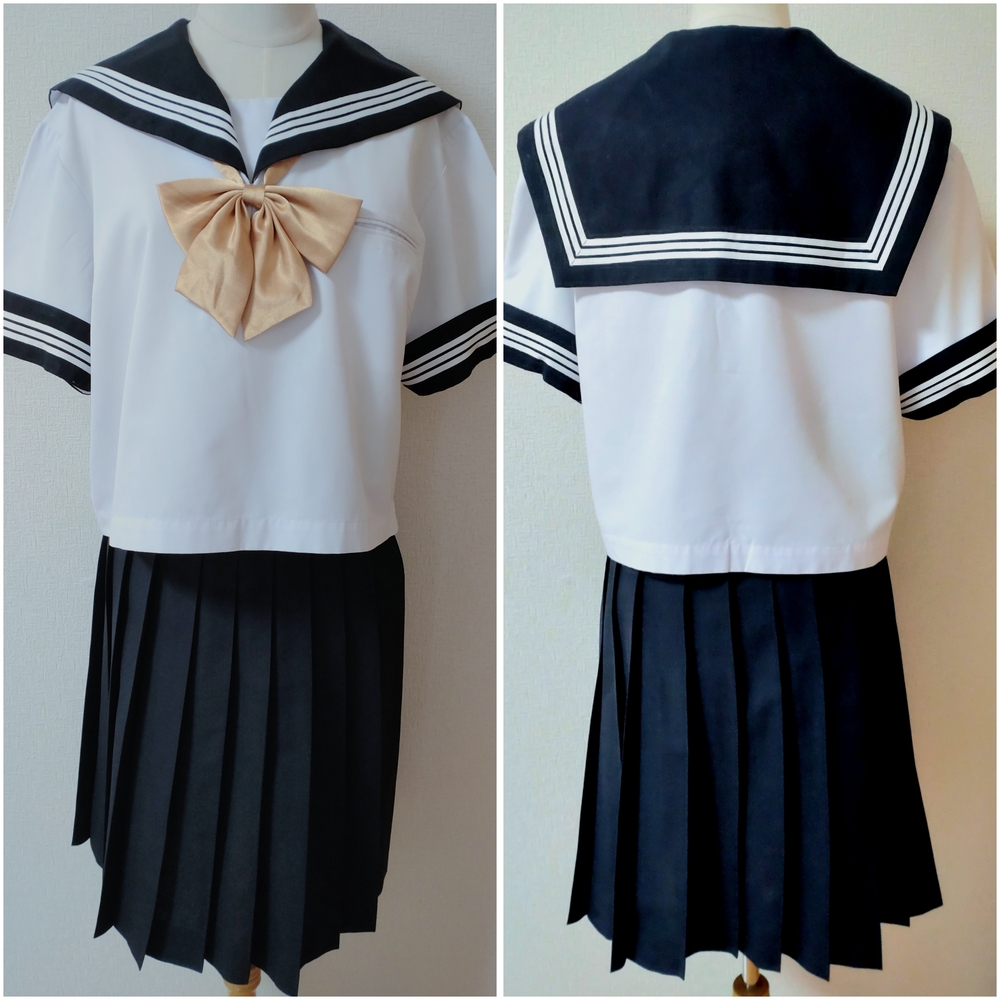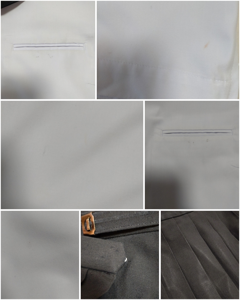 ※初めに※ 新規の方、直近3ヶ月以内に落札者様都合によるキャンセルがある方は、購入意思のコメントをお願い致します。 コメントが頂けない場合、入札削除を致しますのでご了承くださいm(_ _)m また、取引に不安を感じる方からの入札があった場合、予告なく削除する場合が御座いますのでご了承ください。 -----商品説明等----- 不明校 夏服 中間服 セーラー 指定リボン かなり希少なB体で、しかも180です。 ※当方西日本の制服をコレクションしており、西日本方面のセーラー服ですかと思います。 かなり大きなサイズの制服です(*_ _) 男性の方やマシュマロボディの女性の方も可愛く着用頂けるかと思います(*^^*) 他にも特大、ギガサイズを出品中です。 ギガサイズ、特大サイズ、大きなサイズをお探しの方、よろしければ、お時間がある時にでも他の出品商品も覗いてみてくださいm(_ _)m 採寸は全て平置きでの採寸になります。 身幅、ウエストは2倍でお考えください。 なお、素人の採寸になりますので多少の誤差はお許しくださいm(_ _)m 【夏服セーラー】 180B 着丈48.5cm 肩幅46cm 身幅58cm(116cm) 袖丈22cm(カフスを含む) ホワイトボディにブラック衿のセーラーです。 かぶりタイプ、サイドファスナーです。 ホワイトの3本ラインでかっこいいデザインです。 衿、カフス、胸当ては取り外し可能です。 前側に小さな汚れあり数箇所あり。 ポケット周りに汚れあり。名札を付けていたのか、ポケットに穴があります。 首周りや袖口に薄く黄ばみがありますが、酷く目立つような難はありません。 【中間服セーラー】 180B 着丈49cm 肩幅46.5cm 身幅58cm(116cm) 袖丈62cm(カフス含む) ホワイトボディにブラック衿のセーラーです。 かぶりタイプ、サイドファスナーです。 ホワイトの3本ラインでかなり素敵です。 衿、カフス、胸当ては取り外し可能です。 半袖同様、酷く目立つような難はありませんが、ポケットや所々に小さな汚れ、ポケットに名札を付けていたのか、ピンを刺したような穴があります。 【夏服スカート】 ウエスト38.5〜42cm(アジャスターで調整可能です。最大82cm) 着丈62cm(ベルト含む) タグにはウエスト81、丈63と記載あり。 ブラックのプリーツスカートです。 テカリが全体的にあります。 お腹周りに色あせあり。 ベルトに角スレあり。 金具を移動した跡がベルトにあり。 【リボン】 ゴールドのリボンです。 スナップボタンタイプです。 使用感ありで、ひきつりや色が変色していたりする箇所あり。 黒衿にゴールドの組み合わせはかなりかっこいいです(*^^*) 発送方法 ゆうパック80サイズ ゆうパック60サイズ(かなりぎゅうぎゅうに詰め込みます。) 落札頂きましたら、ご希望の発送サイズのご連絡をお願い致します。 ご検討よろしくお願い致しますm(*_ _)m お願いm(_ _)m 落札頂きましたら、24時間以内に取引開始をお願い致します。 諸事情により郵便局(ゆうパック等)での発送しか出来ません。 お振込みは送料通知より銀行営業日3日以内にお願い致します。 |