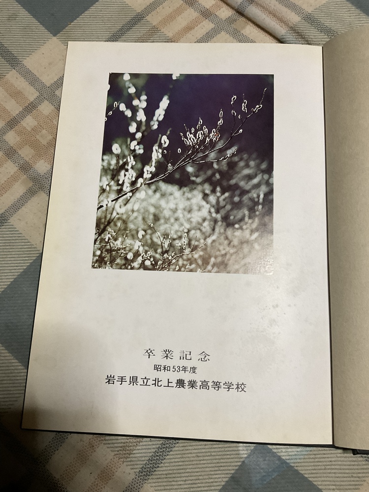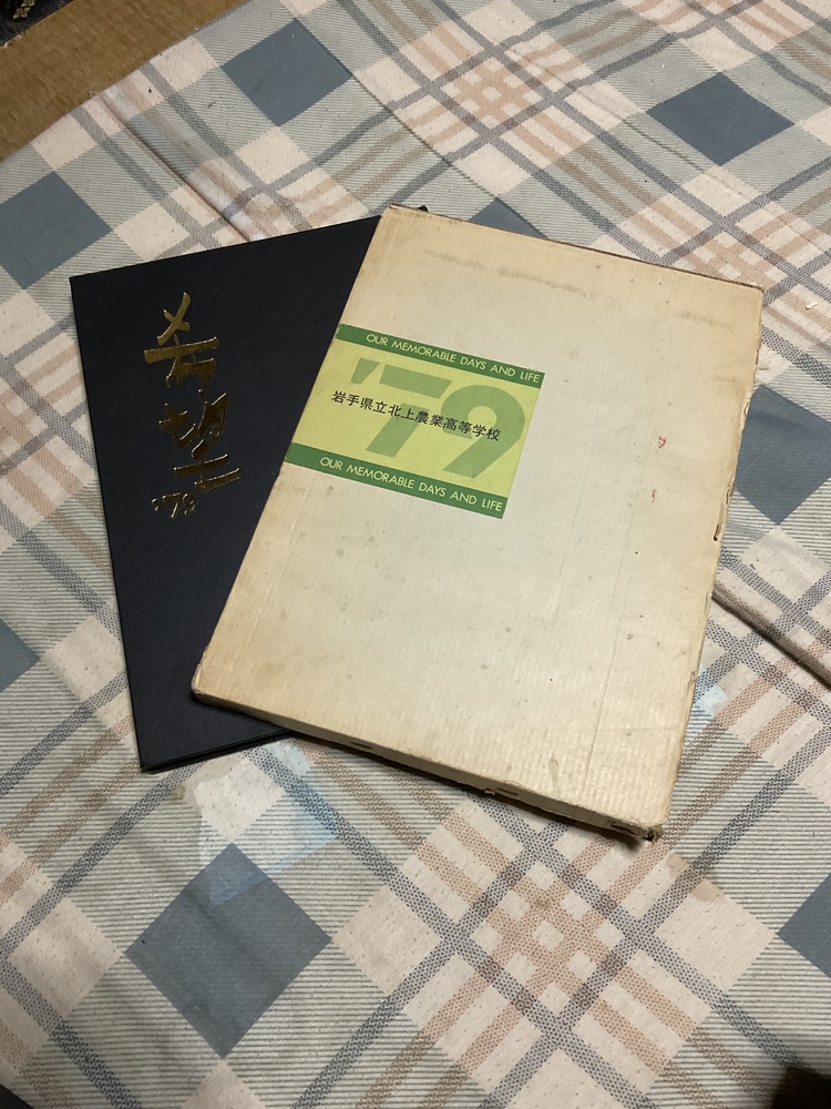 1979年、岩手県立北上農業高等学校の卒業記念アルバム。 北上市といえば鬼剣舞と言う祭で有名である。 卒業アルバムのサイズが、縦/30.5センチ、幅/22.5センチ、 厚み/僅か、1.4センチである。ページ数は、38ページ。 クラス割は、農業科の、A、Bクラス。ほぼ、女性徒ばかりの、 生活科の、C、Dクラスがある。 修学旅行が、北陸、中部方面、松本城、黒部ダム、 明治村であった。 学校行事が、北農祭、後夜祭、収穫感謝祭、体育祭、高体連 等があった。 委員会は、生徒会役員、農業クラブ役員、応援団、交通安全委員会、 生活委員会、保健委員会、図書委員会。 文化部は、剣舞部、新聞部、珠算部、吹奏楽部、コーラス部、演劇部 とある。 運動部は、書道部、ペン習字部、野球部、排球部(男子)、 排球部(女子)、庭球部(男子)、庭球部(女子)、柔道部、 陸上部、ソフト部、籠球部などがあったようだ。 この時代の世相背景は、ソ連のミグ25が函館に強行着陸、 鹿児島県で五つ子誕生、中国 毛沢東死去、 米国 カーター大統領誕生、成田空港開港など。 よろしくです。 |