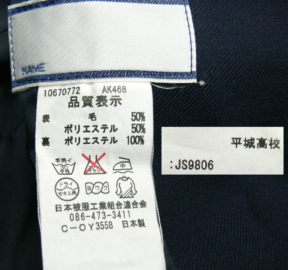 いたずら入札が多く困っています! 新規の方、評価5以下の方は購入意思確認の為コメント入れてください。 ない場合は削除します。 また、ご落札後は24時間以内に落札連絡お願いします。 お支払はご落札後5日以内にてお願い致します。 ご連絡無しで過ぎた場合、落札を取り消しいたしますのでご注意ください。 ご覧いただきありがとうございます 奈良県立 平城高校 *商品説明* ◆黒系ブレザー1枚 グレー系冬スカート1枚 指定外品の長袖ブラウス1枚 ◆スカートプリント *サイズ* 《ブレザー》160A 肩幅 41cm 身幅 49cm 着丈 60cm 袖丈 54cm 《冬スカート》 ウエスト 64〜68cm 丈 55cm 《長袖ブラウス》 *状態* ランク C ブレザーに汚れ・テカリ・色あせ・毛玉があります。 *発送* 60サイズの段ボールで大阪よりお送りします。 品名『衣類』と記載します。 ヤマト宅急便 全サイズ一律850円 (北海道・沖縄を除く) 【北海道】 60サイズ 1700円 80サイズ 2000円 【沖 縄】 60サイズ 1260円 80サイズ 1870円 ☆発送は火・水・金です。 月・木・土・日・祝日は発送お休みです。 ☆火・水・金曜日はお昼12時までに 入金を確認出来ましたら その日にお送りいたします。 それ以降の時間のものは翌発送日になります。 ☆センター止め可能です。 ご希望の際はセンターコードをお知らせください。 ☆お時間帯指定可能です。 @午前中A14〜16時B16〜18時 C18〜20時D19〜21時 ☆同梱発送可能です。 取引メッセージでご連絡お願いします。 *注意事項* ◎落札後24時間以内にご連絡がとれる方の ご入札お待ちしております♪ ◎ノークレーム・ノーキャンセル・ ノーリターンでお願いします。 ◎お取り置きは最初の商品の落札日を含め5日以内と させていただきます。 ◎お支払いは三井住友銀行指定口座へ 『落札額+上記送料』お振込みお願いいたします。 ■メッセージ・ご質問などへのお返事 火・水・金の10時〜14時 ■発送 火・水・金 |