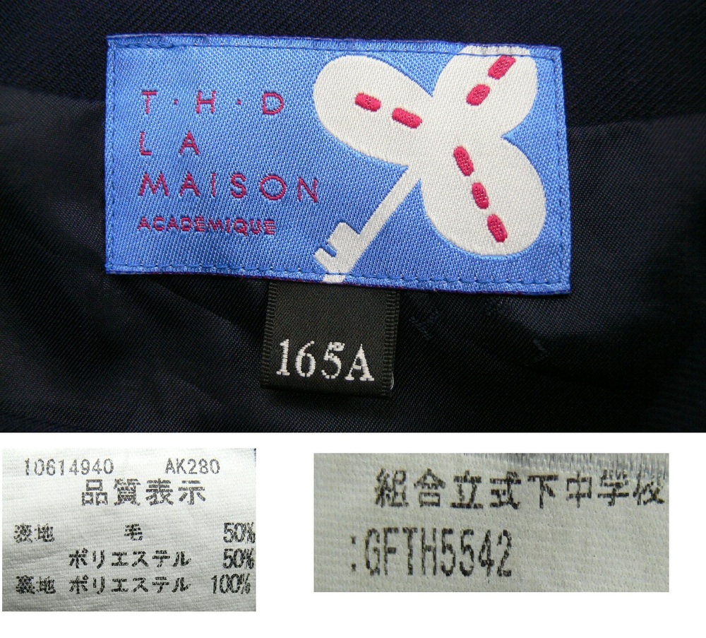 いたずら入札が多く困っています! 新規の方、評価5以下の方は購入意思確認の為コメント入れてください。 ない場合は削除します。 また、ご落札後は24時間以内に落札連絡お願いします。 お支払はご落札後5日以内にてお願い致します。 ご連絡無しで過ぎた場合、落札を取り消しいたしますのでご注意ください。 ご覧いただきありがとうございます 式下中学校 *商品説明* ◆赤2本ラインの冬セーラー1枚 冬スカート1枚 名札・リボン付 すべて指定品 ◆セーラー襟後ろ裏刺繍 ◆スカート刺繍 *サイズ* 《冬セーラー》165A 肩幅 40cm 身幅 50cm 着丈 48cm 袖丈 56cm 《冬スカート》 ウエスト 60〜64cm 丈 54cm *状態* ランク C セーラー・スカートにテカリがあります。 セーラーの左袖口にわずかな擦り切れがあります。 *発送* 60サイズの段ボールで大阪よりお送りします。 品名『衣類』と記載します。 ヤマト宅急便 全サイズ一律850円 (北海道・沖縄を除く) 【北海道】 60サイズ 1700円 80サイズ 2000円 【沖 縄】 60サイズ 1260円 80サイズ 1870円 ☆発送は火・水・金です。 月・木・土・日・祝日は発送お休みです。 ☆火・水・金曜日はお昼12時までに 入金を確認出来ましたら その日にお送りいたします。 それ以降の時間のものは翌発送日になります。 ☆センター止め可能です。 ご希望の際はセンターコードをお知らせください。 ☆お時間帯指定可能です。 @午前中A14〜16時B16〜18時 C18〜20時D19〜21時 ☆同梱発送可能です。 取引メッセージでご連絡お願いします。 *注意事項* ◎落札後24時間以内にご連絡がとれる方の ご入札お待ちしております♪ ◎ノークレーム・ノーキャンセル・ ノーリターンでお願いします。 ◎お取り置きは最初の商品の落札日を含め5日以内と させていただきます。 ◎お支払いは三井住友銀行指定口座へ 『落札額+上記送料』お振込みお願いいたします。 ■メッセージ・ご質問などへのお返事 火・水・金の10時〜14時 ■発送 火・水・金 |