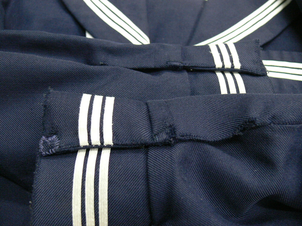 いたずら入札が多く困っています! 新規の方、評価5以下の方は購入意思確認の為コメント入れてください。 ない場合は削除します。 また、ご落札後は24時間以内に落札連絡お願いします。 お支払はご落札後5日以内にてお願い致します。 ご連絡無しで過ぎた場合、落札を取り消しいたしますのでご注意ください。 ご覧いただきありがとうございます *商品説明* ◆白3本ラインの冬セーラー1枚 冬スカート1枚 リボン付 すべて指定品 ◆前開きファスナー ◆セーラーは大きなサイズ *サイズ* 《冬セーラー》 肩幅 41cm 身幅 52cm 着丈 47cm 袖丈 61cm 《冬スカート》 ウエスト 60〜64cm 丈 63cm *状態* ランク E セーラーに毛玉があります。 両袖口に破れがあります。 リボン・ラインに黄ばみがあります。 スカートのプリーツ3本擦り切れています。 *発送* 60サイズの段ボールで大阪よりお送りします。 品名『衣類』と記載します。 ヤマト宅急便 全サイズ一律850円 (北海道・沖縄を除く) 【北海道】 60サイズ 1700円 80サイズ 2000円 【沖 縄】 60サイズ 1260円 80サイズ 1870円 ☆発送は火・水・金です。 月・木・土・日・祝日は発送お休みです。 ☆火・水・金曜日はお昼12時までに 入金を確認出来ましたら その日にお送りいたします。 それ以降の時間のものは翌発送日になります。 ☆センター止め可能です。 ご希望の際はセンターコードをお知らせください。 ☆お時間帯指定可能です。 @午前中A14〜16時B16〜18時 C18〜20時D19〜21時 ☆同梱発送可能です。 取引メッセージでご連絡お願いします。 *注意事項* ◎落札後24時間以内にご連絡がとれる方の ご入札お待ちしております♪ ◎ノークレーム・ノーキャンセル・ ノーリターンでお願いします。 ◎お取り置きは最初の商品の落札日を含め5日以内と させていただきます。 ◎お支払いは三井住友銀行指定口座へ 『落札額+上記送料』お振込みお願いいたします。 ■メッセージ・ご質問などへのお返事 火・水・金の10時〜14時 ■発送 火・水・金 |