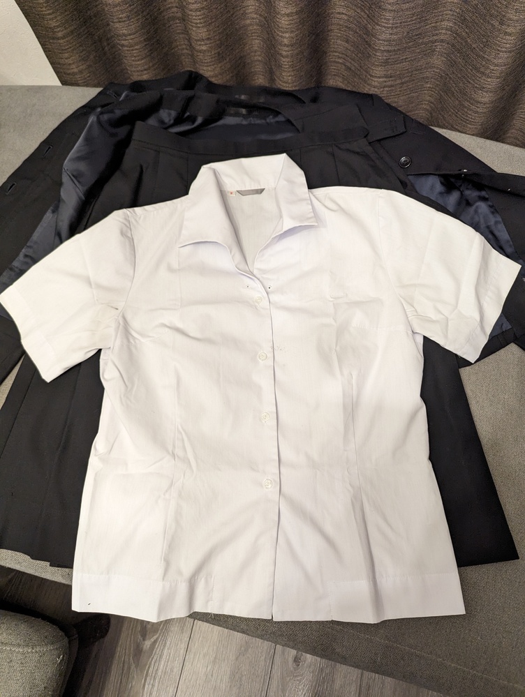 ご覧いただきありがとうございます。吉原高校指定セットとなります。全体的にテカリあり、ブラウスは処分してしまったとのことで、別の方から頂いたMサイズのブラウスとなります。スカートウエスト75、スライドアジャスター調整式となります。ボレロ左袖口染み、ブラウス胸と右脇マジックのインクのような汚れあります。テカリ等、着古した感がとてもあります事ご了承ください。 |