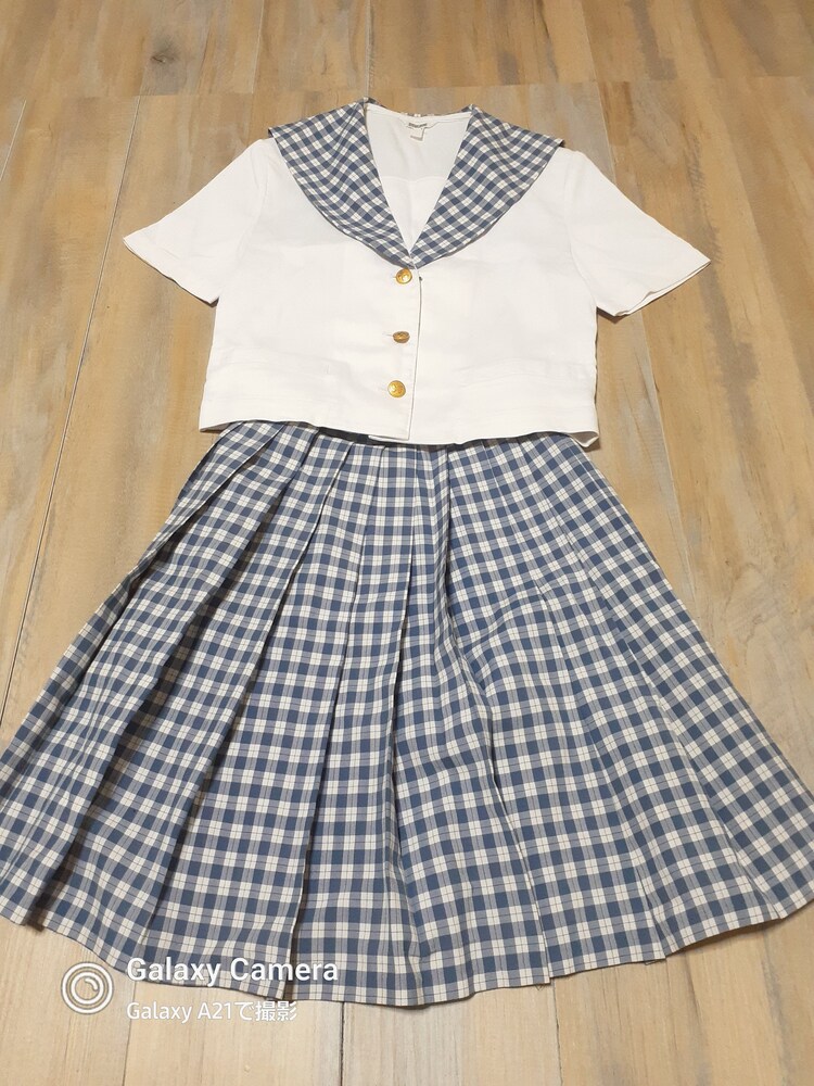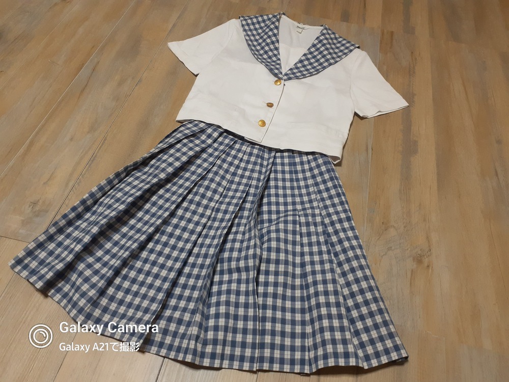 多少の使用感あり 半袖セーラーブラウス 丈50 肩幅39 脇下身幅45 スカート w60 丈48 |