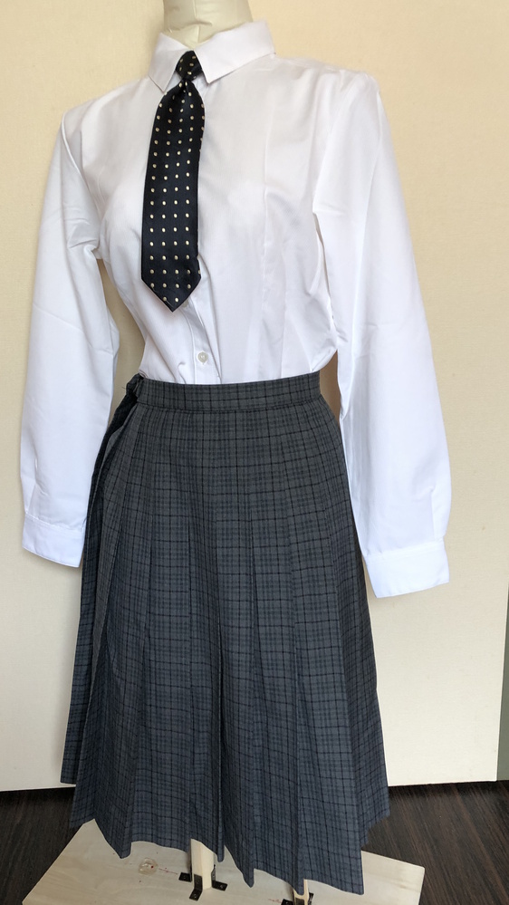 制服3点セット(ブラウス、黒地金水玉ネクタイ、グレースカート)です。 素人採寸ですがサイズは下記の通りです。返品返金不可でお願いします。 グレースカート W66cm 丈57cm 新品ブラウス11号 黒地金水玉ネクタイ |