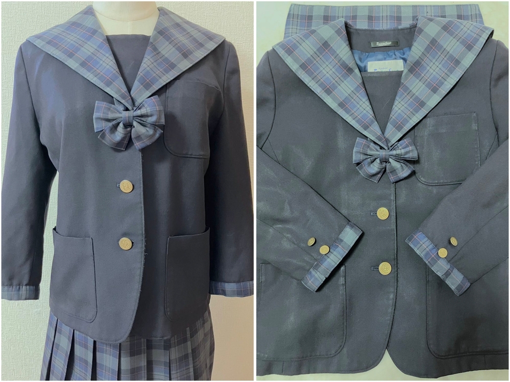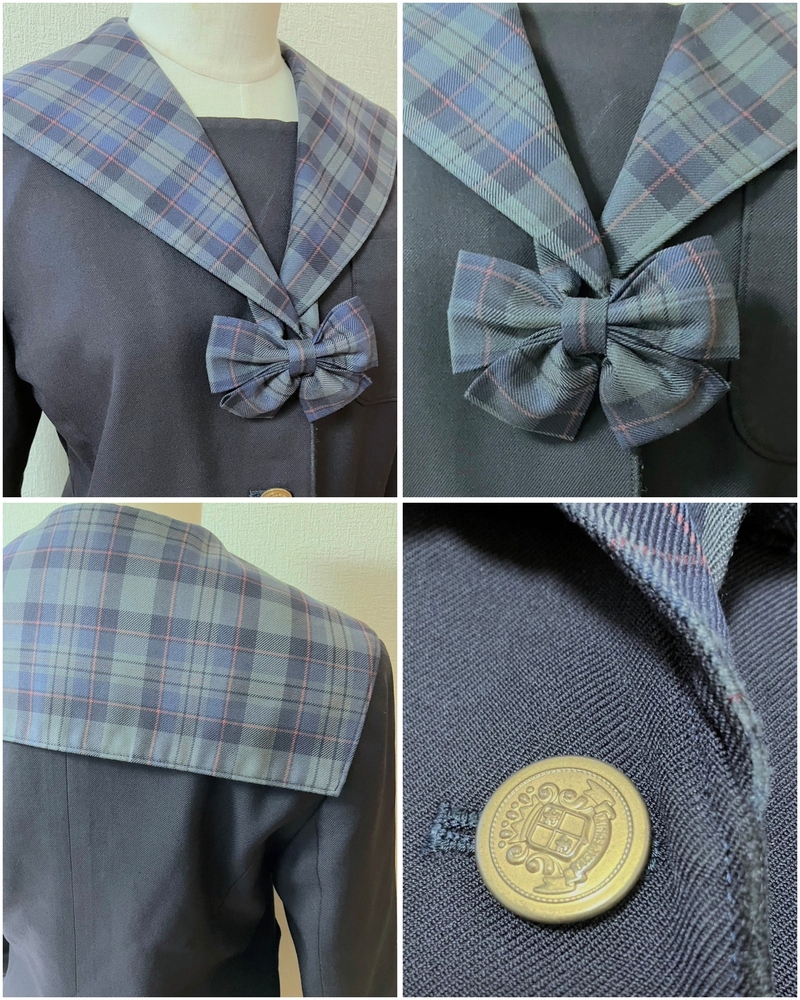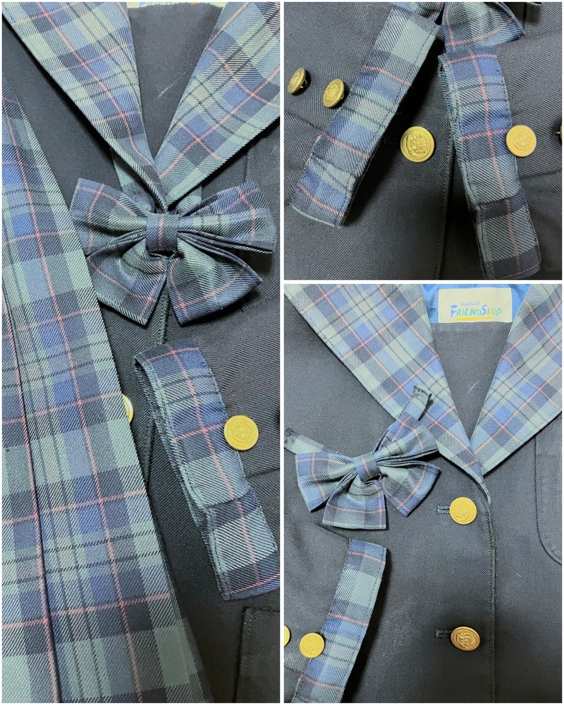 ※初めに※ 直近3ヶ月以内に落札者様都合によるキャンセルがある方の入札はご遠慮ください。 ※新規の方は購入意志のコメントをお願い致します。 また、取引に不安を感じる方からの入札があった場合、予告なく削除する場合が御座いますのでご了承ください。 トラブル防止の為、このような厳しい内容となり、大変申し訳ございませんm(_ _)m 長くなり申し訳ございませんm(_ _)m 当方の仕事(不定休)の関係で入金確認に2、3日、発送に1週間くらいかかりますので、その点をご了承くださいm(_ _)m -----商品説明等----- 愛媛県 土居中学 冬服 チェック柄セーラーの可愛いデザインのセーラー服です。 こちら上下指定品ですが、改造品の為ご注意ください。 採寸は全て平置きでの採寸となります。 身幅、ウエストは2倍でお考えください。 また、多少の誤差はお許しくださいm(_ _)m 【冬服セーラー】 S 着丈55cm 肩幅38cm 身幅47cm 袖丈47.5cm ネイビーボディに、グレー、ネイビーチェックのセーラー服です。 前開きボタンタイプです。 こちら改造品になります。 オーナー様が高校の文化祭での仮装用に改造したそうです。 リボン、袖口のチェックはオーナー様の手作りだそうです。 こちら全体的にテカリがあり、テカリで白くなっている箇所あり。 襟に糸の飛び出しあり。 袖にやや色あせあり。 前側縁に生地傷みあり。 記名あり。 【冬服スカート】 ウエスト31.5〜33.5cm(アジャスターで調整可能) 着丈46cm(ベルト含む) セーラーの襟と同柄のグレー、ネイビーチェックのミニスカートです。 全体的にテカリあり。 所々に糸飛び出しあり。 スカートをオーナー様が手縫いで裾上げされております。 記名あり。 こちら2年生の冬にご自身のスカートが小さくなり、従姉妹さんからのお下がりらしく、上下で記名が違いますが、上着のオーナー様よりお預かり致しました。 【リボン】 スカートをカットし、手作りしたそうです。 スナップボタンで取り外し出来ます。 本来はリボンはありません。 土居中学ですが、制服のモデルチェンジされており、今はセーラーの方とブレザーの方が通学されているそうで、現行、旧制服どちらに付けて良いか分からないため、両方にチェックしております。 発送 ゆうパック80サイズ ※もし他の方法でご希望がある場合は、必ずご入札前にご相談ください。 また、終了日当日の返答は出来かねますのでご了承下さい。 ご検討よろしくお願い致します(*^^*) お願いm(_ _)m 落札頂きましたら、24時間以内に取引開始をお願い致します。 諸事情により郵便局(ゆうパック等)での発送しか出来ません。 お振込みは送料通知より銀行営業日3日以内にお願い致します。 |