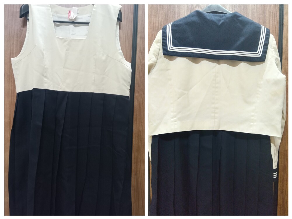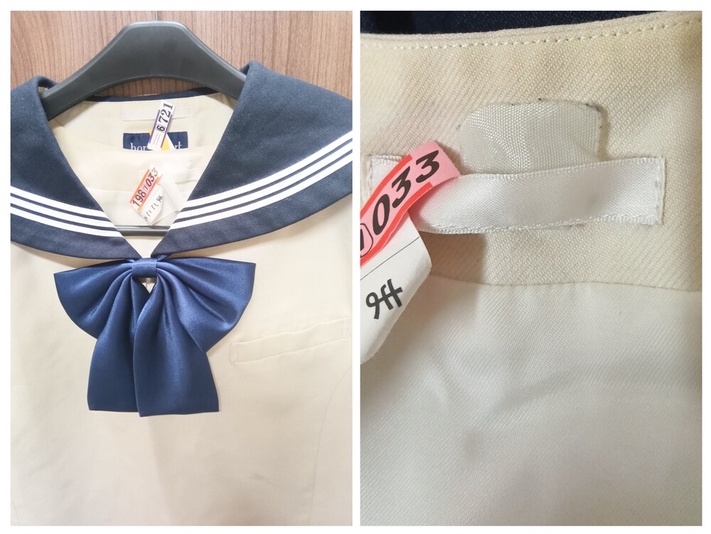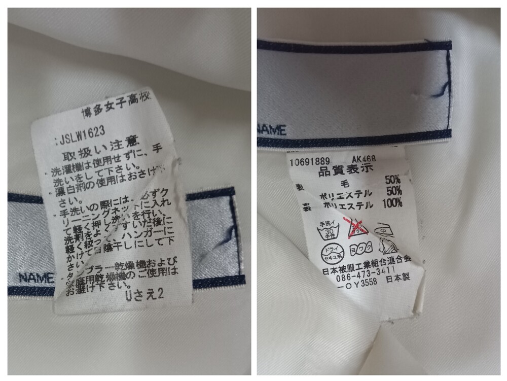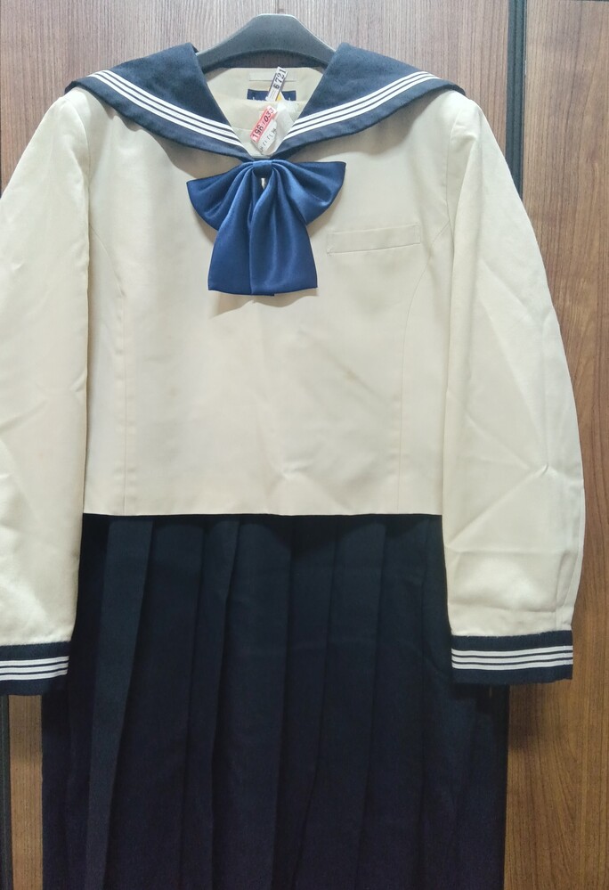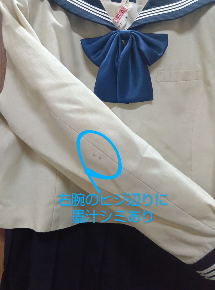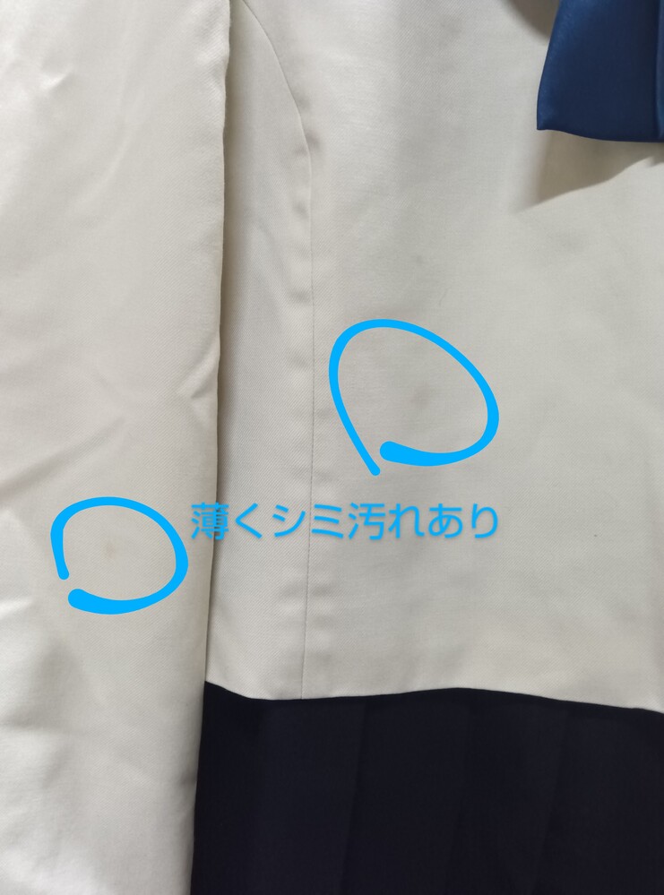 博多女子高校 長袖セーラー上下 指定リボン付き 冬服セーラー上衣 サイズ表記消えていて不明 肩幅約45ぐらい 脇下の身幅55ぐらい 冬服ジャンパースカート サイズ消えていて不明 スカート切り替え部のウエスト幅50ぐらい 着丈97ぐらい 譲ってもらったときに その子いわく180サイズでしたとのこと サイズから類推するに 上180A ジャンスカ180B かもしれません シミ汚れが何点か 目立つ箇所ありますので 写真に記載しております ここまで大きいサイズは初めて私も見ましたので かなりレア出品になります (出品枠が空いているときに不定期で出品) ホック欠損なし ファスナー良好 リボンは 指定品新品 を付属させました 業者クリーニング済み 保管時のシワがあります 発送は クロネコ 着払いにて (元払いは要ご相談にて) お取引終了後に「受取連絡」をされないかたは入札ご遠慮ください (評価記入と 受取連絡 は別です) 以下お取り引き注意事項
