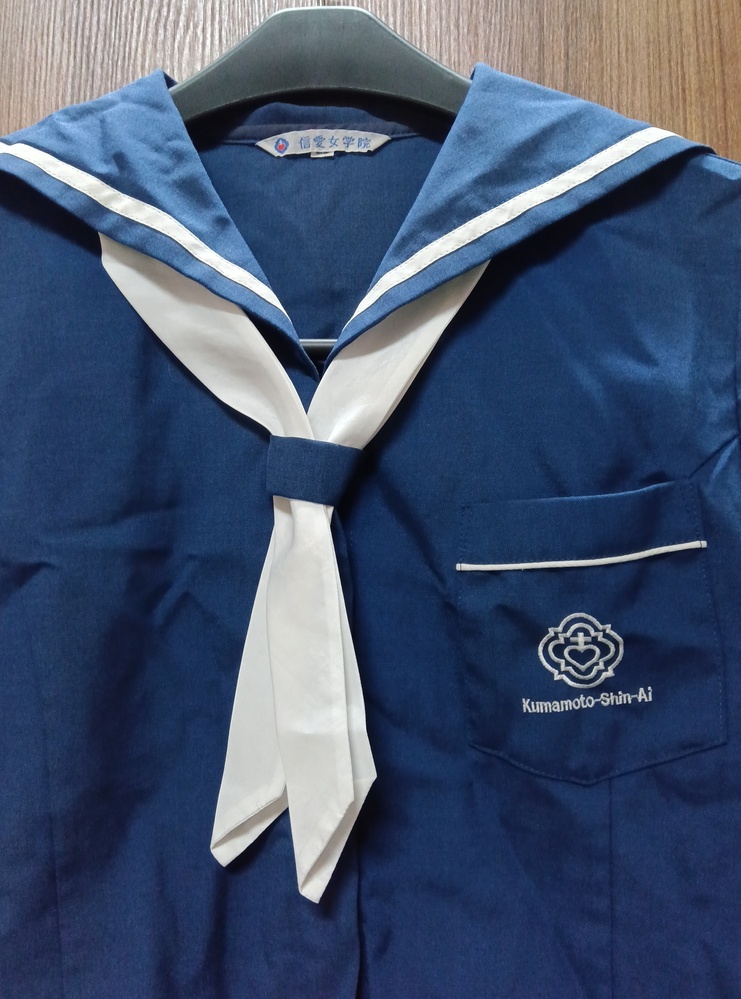 信愛女学院の 現行 夏服セーラー上 指定の白スカーフ付きです サイズは3AB表記あり ボタン欠損なし 写真にも書いてますがスカーフ側のホックが取れかけ 使用感あります 保管時のシワあります クロネコ 着払いにて (元払いは要ご相談にて) (匿名取引はフリマアプリ経由になります)