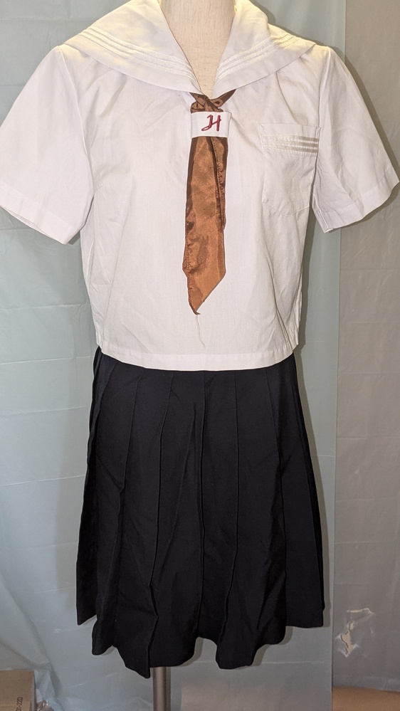 セーラー服のみ指定品、スカートは指定外品になります 本来はスカーフエンジ赤ですが無いので別のもので代用してます セーラー服 袖丈21.肩幅31.身幅33.着丈47 スカート ウエスト63から66.スカート丈53 状態は写真からご判断ください レターパックプラスかゆうパックにて発送します |
