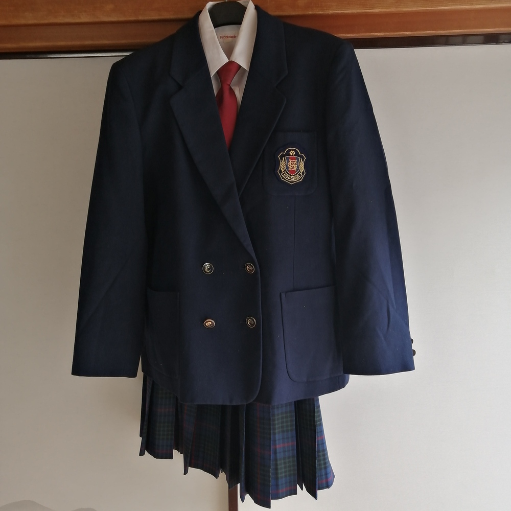 江戸川女子高等学校の冬旧制服です。 どのアイテムも目立った傷や 汚れもなく美品です。 (ブレザー) 肩幅43 袖丈56.5 着丈64 (冬スカート) ウエスト66 丈51 (長袖ブラウス) 指定ブラウス 左ポケットに校章の刺繍 (ネクタイ) 指定ネクタイ |