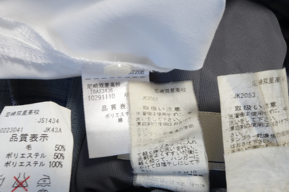 ★ご覧いただきありがとうございます★ 349◆尼崎市立 尼崎双星高校◆冬服ブレザー上下・半袖ブラウス・夏スカート・指定ネクタイ◆165A W63 ☆専門業者のクリーニング済です(ドライクリーニング又は温水洗いですべて除菌加工済)☆ ☆清潔な状態の物をお送り致します☆ ※状態:特に目立つダメージやシミなどはございません。 サイズ等は下記をご参照下さい。 〈ブレザー〉 表記サイズ:165A 着丈:61.5cm 肩幅:41.5cm 身幅:48cm 袖丈:58cm 素材:毛50% ポリエステル50% 〈半袖ブラウス〉 表記サイズ:M 着丈:47.5cm 肩幅:42cm 身幅:49cm 袖丈:cm 素材:ポリエステル65% 綿35% (スカート)2枚 夏冬同寸 表記サイズ:63-56 ウエスト:63cm 丈:56cm ヒダ数:16 アジャスター:あり 素材:毛50% ポリエステル50% ※素人採寸になりますので多少の誤差はご容赦下さいませ。 ☆入札をお待ちしております♪ 【お支払いについて】 ・三井住友銀行(お振込み) ・「落札額+送料」をお振込みください。 ・お支払は3日以内にてお願い致します。 ※ご落札後3日以内に取引連絡及びご入金をお願い致します。3日経過後、何も連絡がない場合は落札者都合でキャンセルさせて頂きます。新規の方は24時間以内に連絡及びご入金がない場合は取り消しさせて頂きます。こちらからは催促の連絡は致しません。ご了承くださいませ。 【発送について】 ・兵庫県からの発送になります(ダンボール箱) ・ゆうパック:全国一律850円(60〜120サイズ) ・郵便局留め出来ます。ご希望の郵便局をご連絡ください。 ・120サイズのダンボール箱に収まる数量でしたら同梱可能です。 ・14時までにご入金の確認が出来ましたら当日発送致します。 ・品名は特にご指定がなければ「衣類」で発送いたします。 ・お取り置き、同梱発送可能です。お気軽にお申しつけ下さい。 ・お取り置きは最初の落札日より3日間まで承ります。 ※毎週木曜・日曜は発送業務をお休みさせて頂きますのでご了承ください。 |