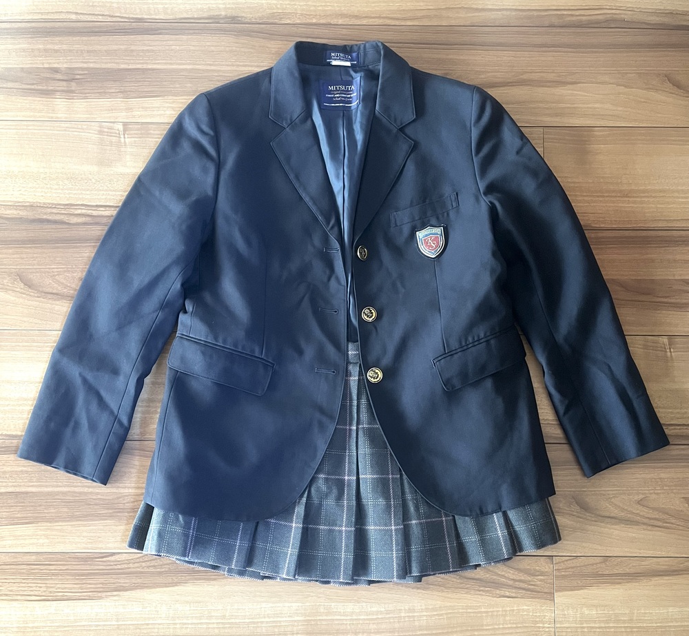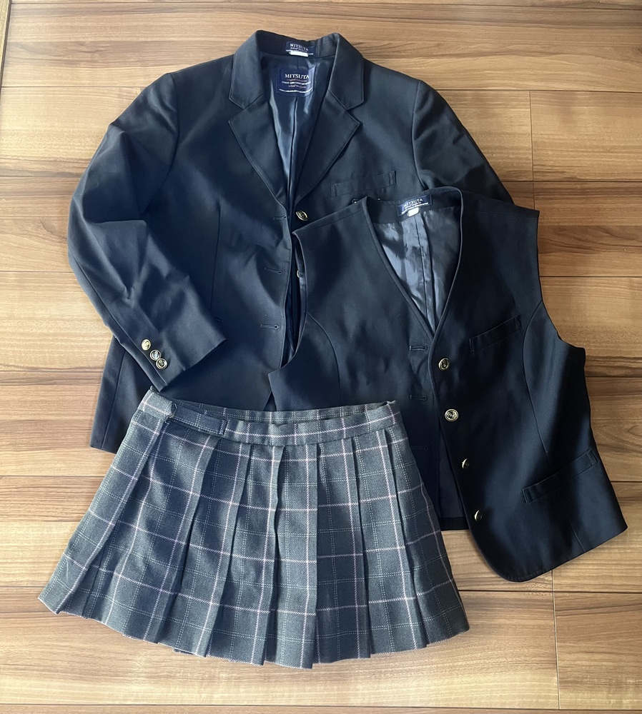 ブレザー、ベスト、スカートの3点セットです。 サイズは平置き実寸でブレザーが幅47センチ、丈60センチです。 ベストは幅46センチ、丈48センチです。 スカートはウエスト72センチ、丈32センチです。 衣類表記にて発送致します。 郵便局留め、日時指定も可能です。 |