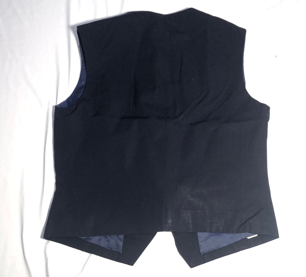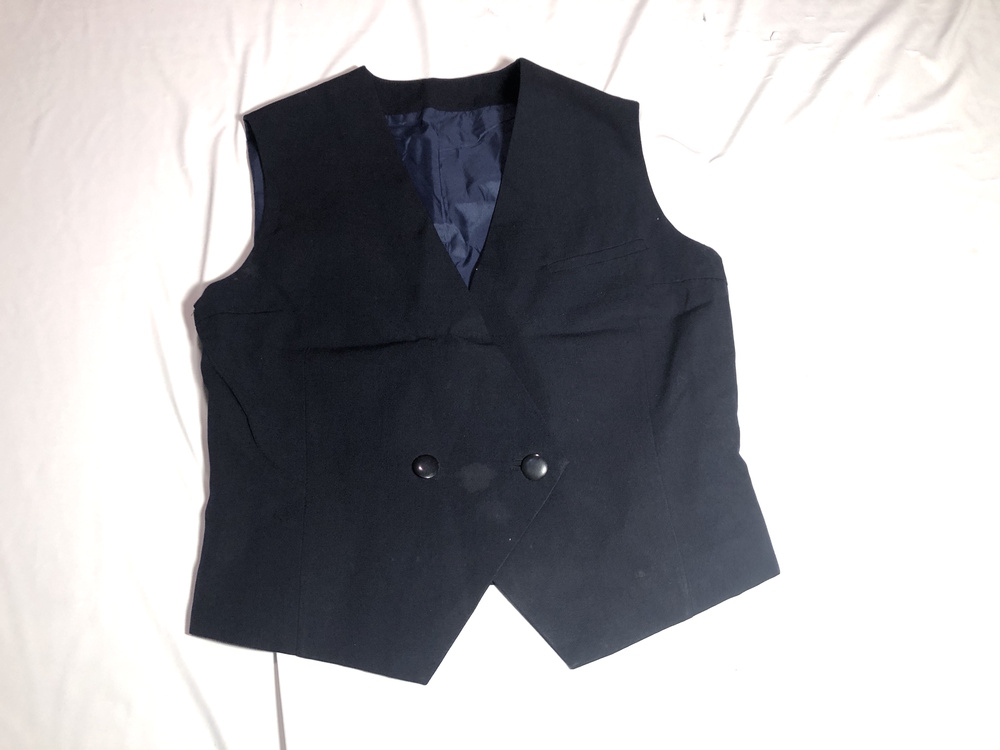 前ボタンタイプの紺色ベストです。 素人採寸ですがサイズは下記の通りです。 返品返金不可でお願いします。 身幅45cm 肩幅35cm 着丈53cm |