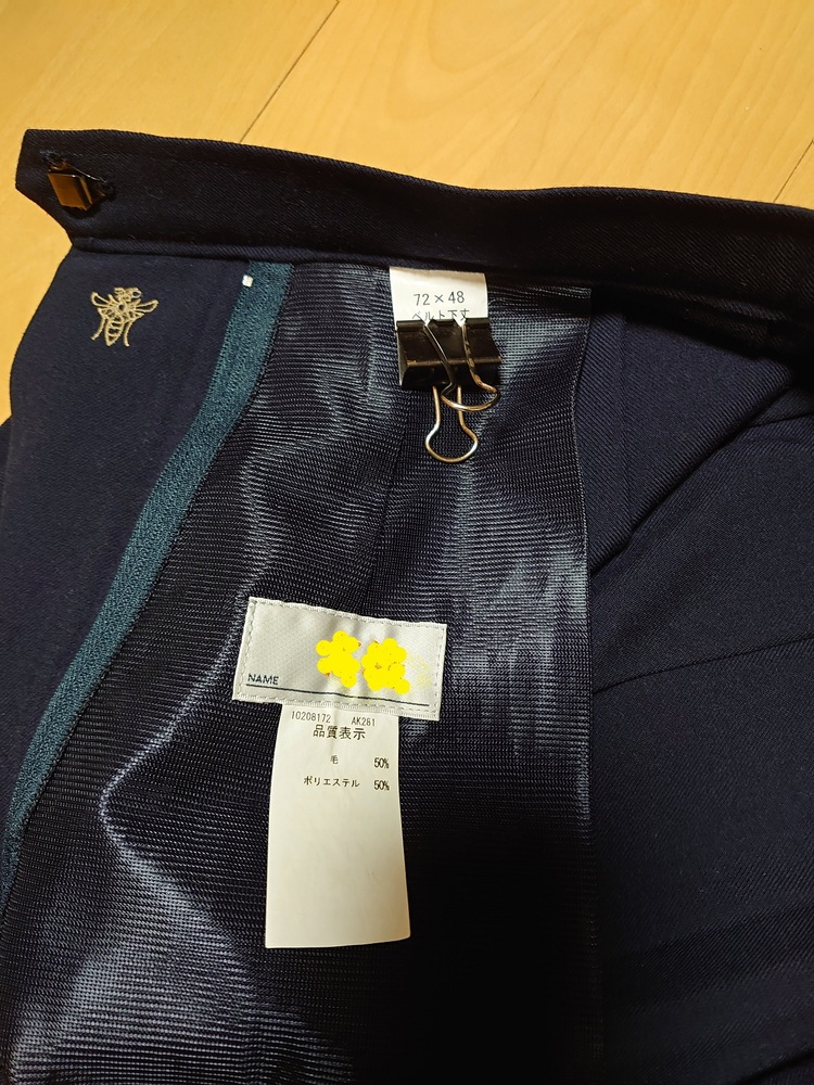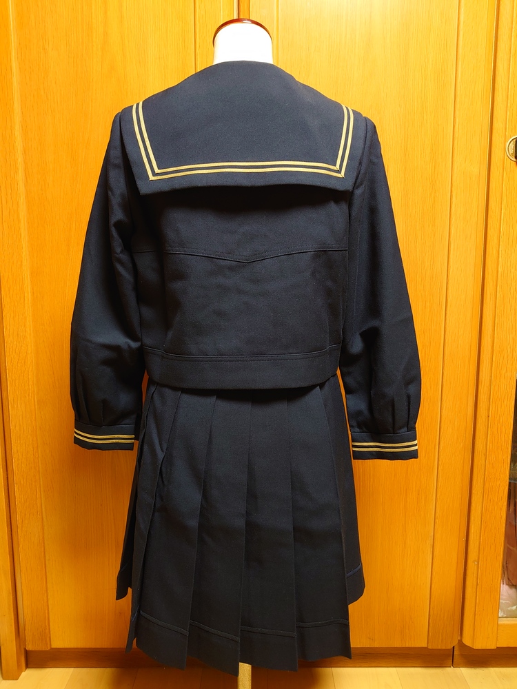 全体的に美品の部類に入ると思いますが、実際に着用していたものですので(2016年頃)、多少のほつれや毛玉等の見落としがあるかもしれません。 あくまで中古品につき神経質な方は入札をお控え下さい。返品・返金は対応致しかねます。 サイズは素人採寸ですのでわずかな誤差があります。 発送前に再度洗濯に出すため、支払い完了から発送までに最大5日程度かかる場合があります。 <セット内容> ◎セーラー 着丈約50cm、肩幅約36cm、袖丈約54cm、胸囲約34cm(タグ表記:身長160、胸囲80、160A) スカーフはセーラーに縫い付け済。 ◎スカート 下丈50cm、腰囲72〜76cm(タグ表記:ベルト72、下丈48)※ ※腰囲以外の採寸は全て平置き。 |
