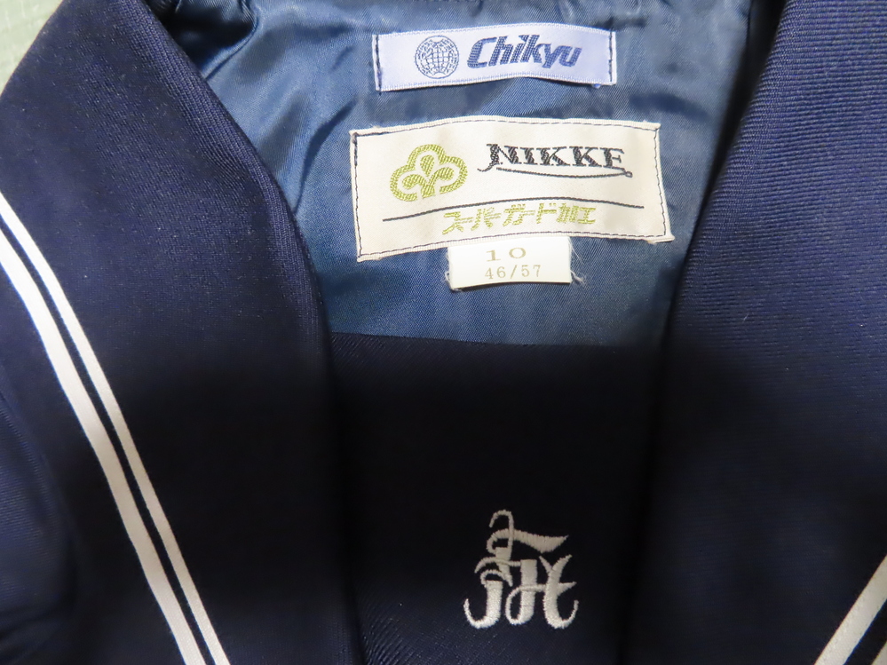 ・上着 セーラー襟のラインは白色太細2本線です。前開ファスナー