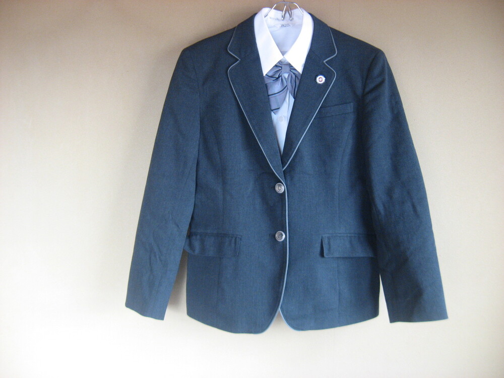 冬服サイズ ブレザー 165A 肩幅44cm 着丈64cm ブラウス 160A ニットベスト L セーター M スカート(アジャスター型ホックです)ウエスト72cm ベルト下丈54cm 夏服サイズ ブラウス 160A スカート(アジャスター型ホックです)ウエスト72cm ベルト丈54cm 付属品 校章 指定リボン |