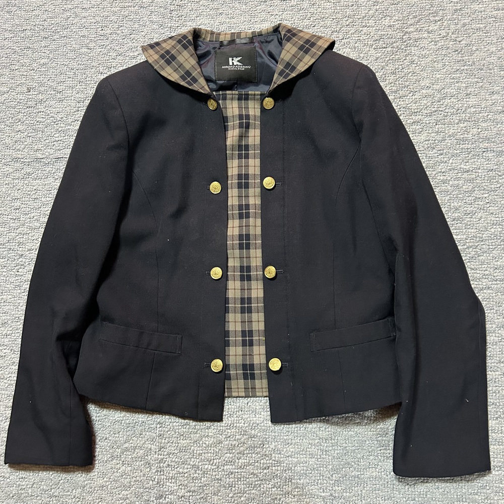 明誠学院高校制服 HIROKO KOSHINO コシノヒロコ ブレザー スカート ブレザー サイズ LT 平置きで 身幅 52pくらい 着丈 51pくらい 肩幅 40pくらい 袖丈 57pくらい スカート ウエスト 69p(調節可能) スカート丈 ベルト下49pくらい 裏地付き 裏地に若干使用感があります いずれも目立つような汚れや傷等のダメージはありませんが、記載のものやテカリ等、若干使用感はあるかと思います |