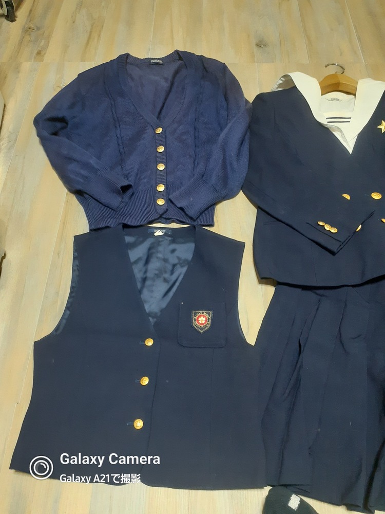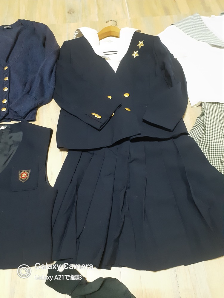 やや使用感あり サイズ165位 半袖セーラーブラウス 丈55 肩幅41 脇下身幅48 多少の使用感程度 夏スカート W66 丈53 多少の使用感程度 冬 ジャケット 160 丈58 肩幅41 脇下身幅47 脇下〜袖先37 多少大きい使用感程度 長袖セーラーブラウス 丈61 肩幅42 脇下身幅49 脇下〜袖先44 ※襟周り黄ばみ 厚手スカート W63 丈48 ベスト 丈49 肩幅36 脇下身幅43 ニットカーディガン 丈60 肩幅43 脇下身幅50 脇下〜袖先49 ※色褪せあり ​​​​​​​靴下 |