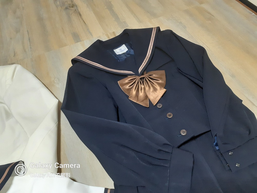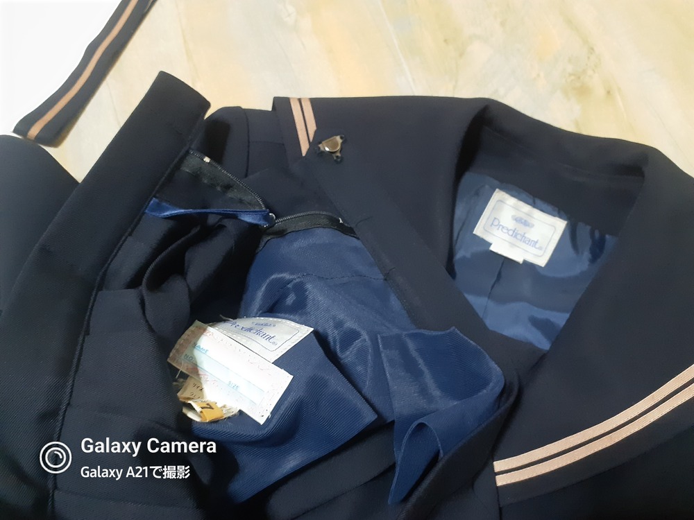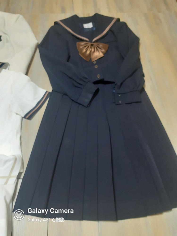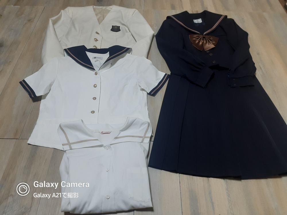 サイズは165です。 やや使用感あります。 春物ジャケット 丈51 肩幅40 脇下身幅49 脇下〜袖先39 ※ちらほらシミあり 長袖セーラーブラウス 丈59 肩幅45 脇下身幅55 脇下〜袖先46 半袖セーラー服 丈53 肩幅39 脇下身幅47 冬セーラー服 丈50 肩幅39 脇下身幅48 脇下〜袖先46 リボン 厚手スカート w63 丈57 ※テカリあり |