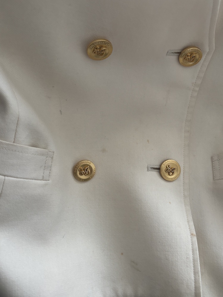 | こんばんわ!この度はご入札ありがとうございます。新たにジャケットの汚れ部分の写真を追加しました。学生の時に使用していた為、フロント部分にぽつぽつとシミや、袖の部分にシャープペンをこすった黒ずみがあります。 |