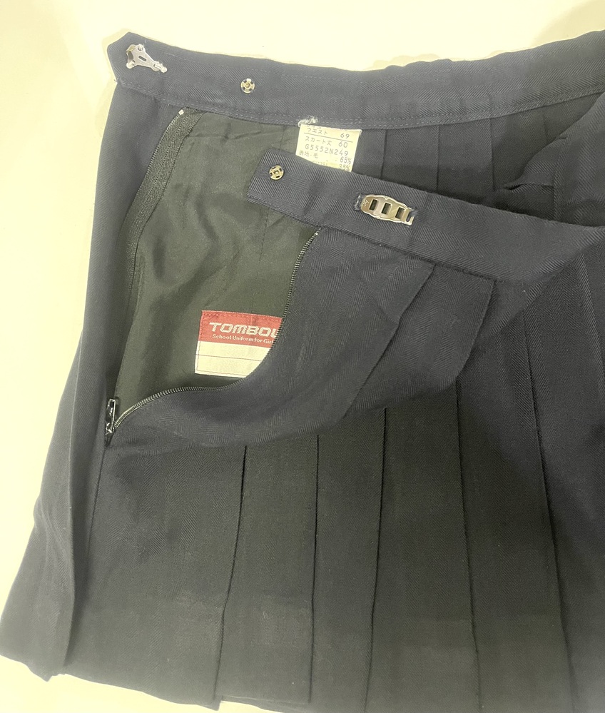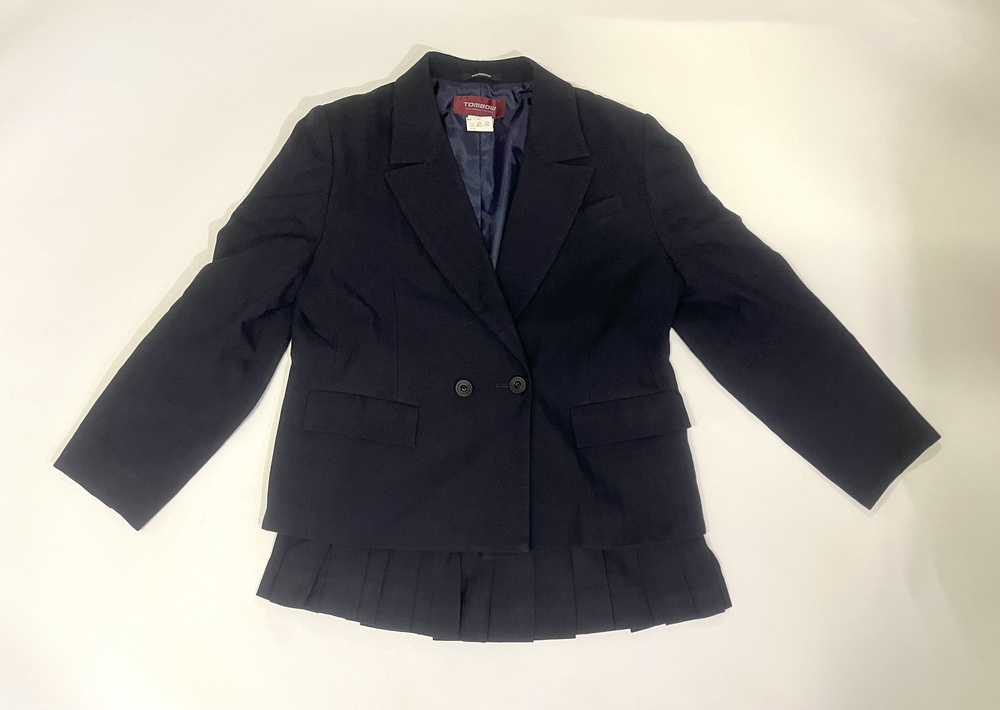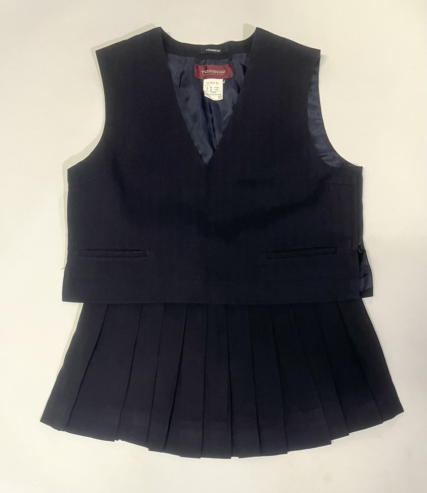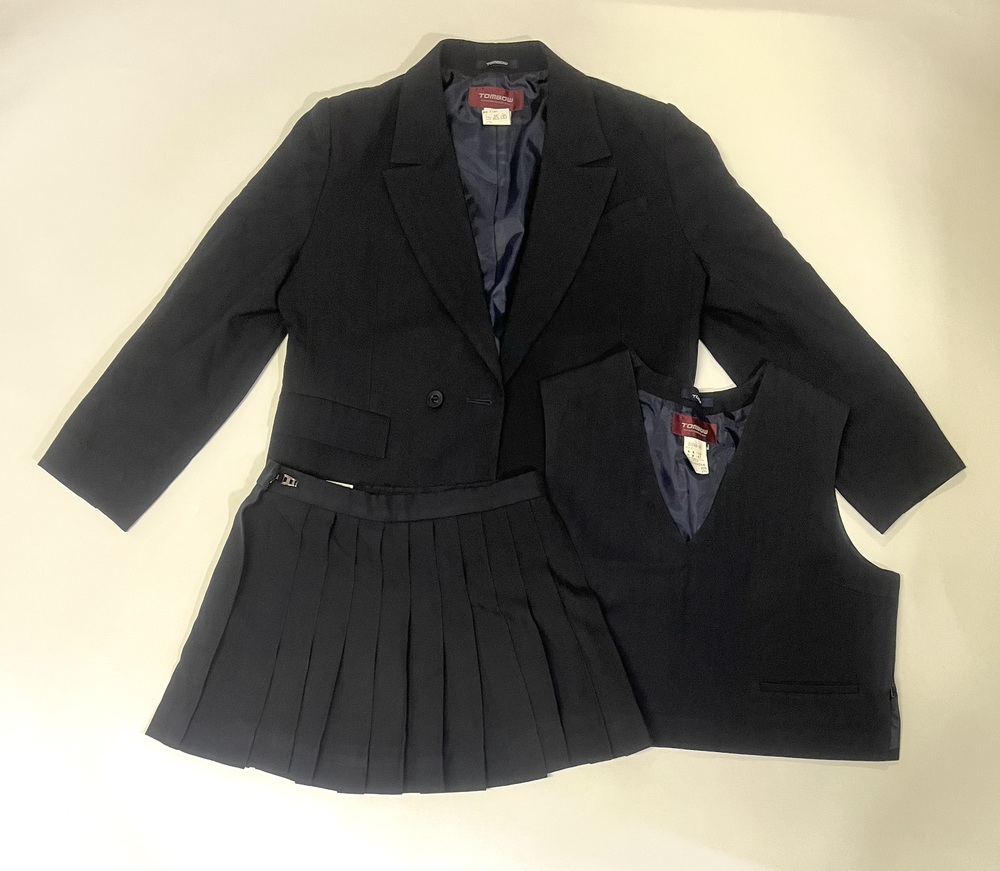 ブレザー、スカート、ベストの3点セットです。 サイズは ブレザーが幅47センチ、丈52センチ。 スカートがウエスト69センチ、丈34センチ。 ベストが幅47センチ、丈42センチです。 衣類表記にて発送致します。 郵便局留め、日時指定可能です。 |