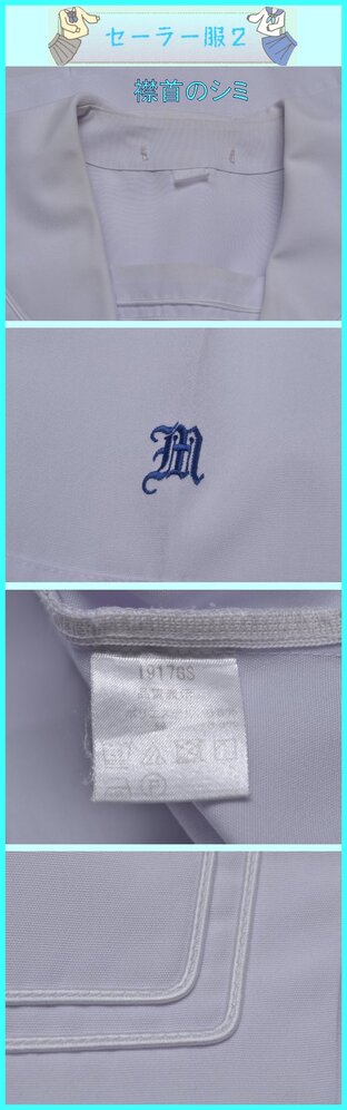 ▲fss-5386 三池高校(夏服)▲ ■■商品説明■■ ●セーラー服1:肩幅38cm位 着丈43cm位 胸周92cm位 ●セーラー服2:肩幅38cm位 着丈43cm位 胸周92cm位 ●スカート:ウエスト63-69(表記66)cm位 丈53cm位 24本前箱プリーツ ●ネクタイ: ◎生地 セーラー服1【表地】ポリエステル65%綿35%【裏地】なし セーラー服2【表地】ポリエステル65%綿35%【裏地】なし スカート【表地】ポリエステル50%毛50%【裏地】なし ◎メーカー セーラー服1:カンコー セーラー服2:カンコー スカート:カンコー ◎開き セーラー服1:左ファスナー開 セーラー服2:左ファスナー開 スカート:左ファスナー開 ◎その他 セーラー服1、2にシミあり(画像参照) ◎所在:大牟田市 ■■発送について■■ ◇以下はお休みさせて頂きます。予めご了承下さい。 『土、日、祝祭日、8月12日〜16日 12月30日〜1月4日』 ◇基本、ヤマト運輸での発送です。 ■■注意事項■■ ◇気づいた点は記入するようしていますが、見落としで、ホックボタン不足、ホツレ、虫食い、シミ、その他欠陥がある場合があります。 ◇スカートの裏側に小さなシミ等があっても表からは見えませんので、基本的に記載は致しません。 ◇汚れの酷い場合や広範囲にある場合は裏側でも記載致します。気になる場合は入札前にご質問下さい。 (ポケットや裏地の破れは記載致します) ◇出品商品は中古品なので、新品のような完璧な商品をお探しの方は、入札をご遠慮頂き、ご理解下さる方のみ入札をお願い致します。 ◇サイズは一部を除き実寸です。素人が採寸しておりますので、多少の誤差はお許し下さい。 ◇スカート丈はウエストベルトを除いた部分を計測しております。(一部を除く) ◇制服は新品以外は全てドライ用洗濯済(毛100についてはドライクリーニング済)です。 ◇ノークレームでお願いします。 ◇評価に多数のマイナスがある方は入札を取り消させて頂く場合があります。 ◇保管場所の都合により質問の回答にはお時間を頂きますので、お早目にお願いします。 ◇他でも同商品を販売しております。場合によっては出品中でも取消が間に合わずに在庫が無い事があります。 ◇出品商品は、公開画像以外にも画像を残しております。 ◇その他、ご質問があればお気軽にどうぞ!! |