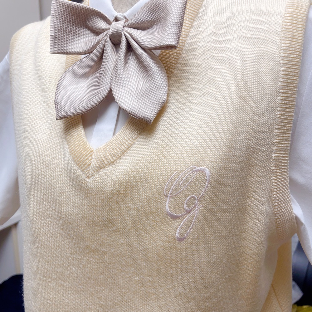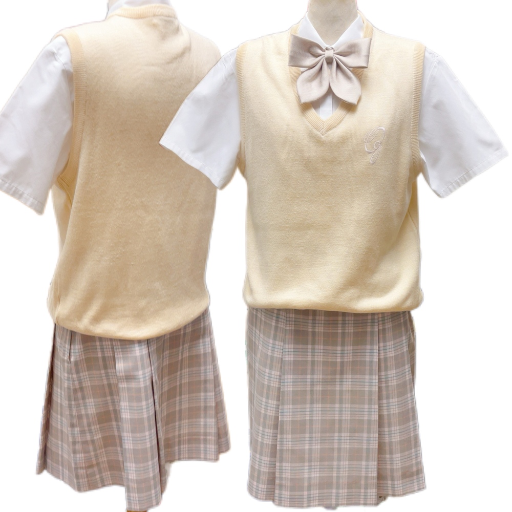 ご訪問頂き誠に有難う御座います。 ご入札前にお手数ですが必ず プロフィールをご一読下さいますよう 何卒お願いを申し上げます。 ご閲覧頂いていない場合のクレームは 受け付けておりませんので 何卒ご了承下さい 以下発送品となります 1987年から続いていたグレーのブレザー制服を廃止し、2008年度より、中高共にピーチベージュのブレザーにグレーのチェックスカート(スカートの色合いは中高で異なる)に一新された。デザインは幾田桃子が手掛けた。 1.ニットベスト M |