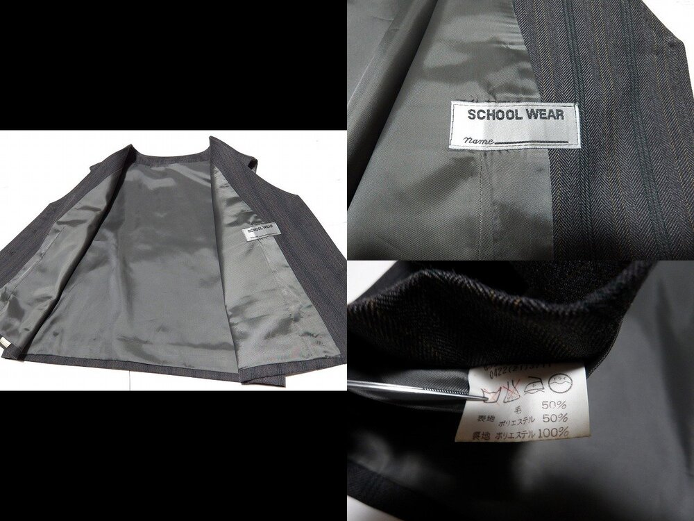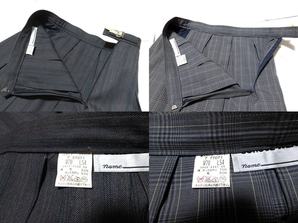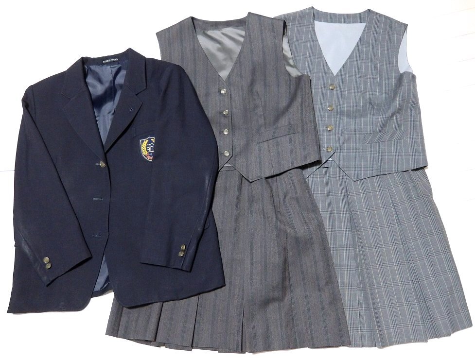 ★東京か神奈川 女子制服セット(ブレザー+ベスト2種+スカート2種) ★内容、サイズは下記です。 ・ジャケット【4】、ベスト(ストライプ)【4】、ベスト(チェック)【4】スカート(ストライプ)【70-54】スカート(チェック)【70-54】 ★実際に計測したところ下記となります。 ★ジャケット:着丈68後65、肩幅42、身幅52、袖丈54 状態:着用感は結構あります。袖にテカリがあります。フロントのボタンが2つ紛失しております。 ★ベスト(ストライプ):着丈53後49、肩幅38、身幅48 状態:着用感はそこそこあります。 ★ベスト(チェック):着丈50、肩幅39、身幅49 状態:着用感はそこそこあります。 ★スカート(ストライプ) :ウエスト67-70くらい、総丈56 状態:着用感はそこそこあります。 ★スカート(チェック) :ウエスト67-72くらい、総丈57 状態:着用感はそこそこあります。 ★ヤマト元払いにて発送します 。 |