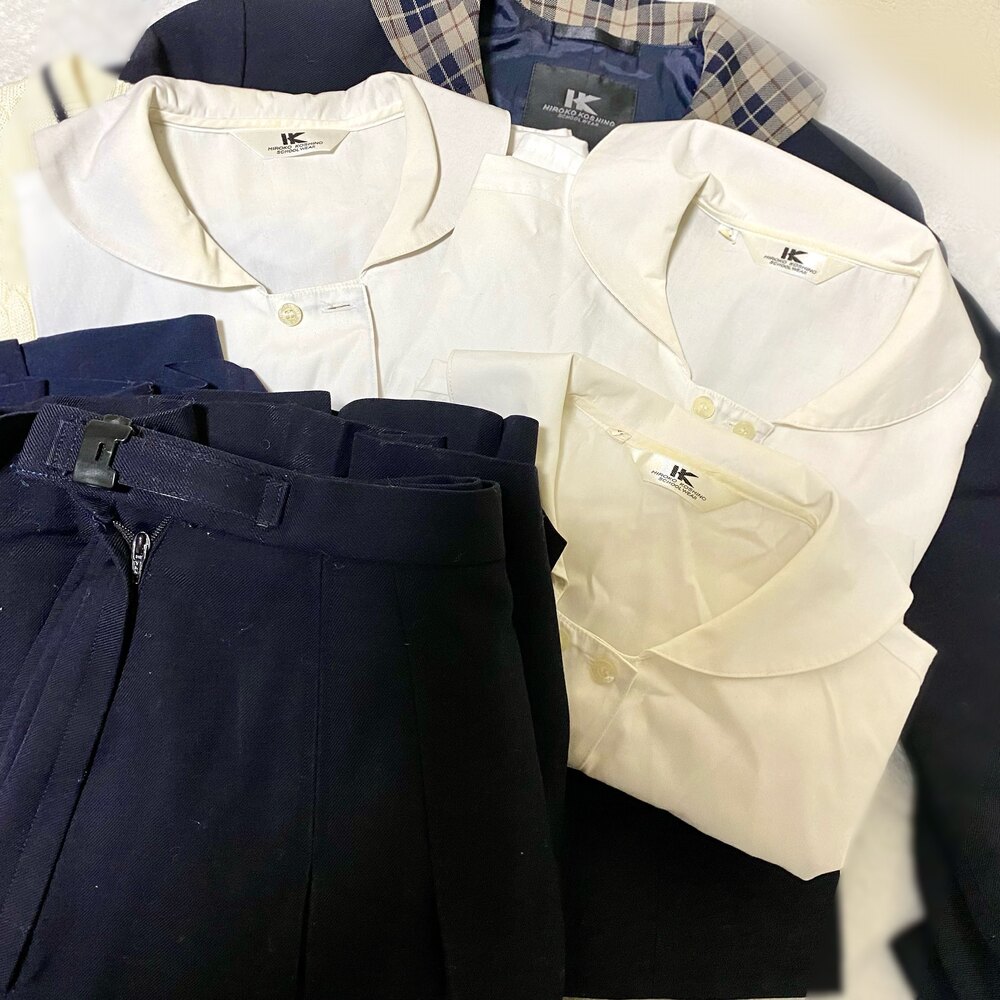 【セット内容】 ・冬ブレザー 1点 ・夏ブラウス 2点 ・中間ブラウス 1点 ・ベスト(破れあり) 1点 ・夏スカート 1点 ・冬スカート 1点 【サイズ】 ・夏スカート 69-53 ウエスト 平置き約35cm 総丈約 53cm ・冬スカート 69-53 ウエスト 平置き約35センチ 総丈 約53cm ・夏ブラウス Mサイズ 平置き約42cm 着丈 約61センチ ・中間ブラウス Mサイズ 平置き約42cm 着丈 約61センチ ・冬上着 Mサイズ 平置きで約43cm 着丈 約50cm 【状態】 中古ですので汚れ、シワ等使用感ございます。 |