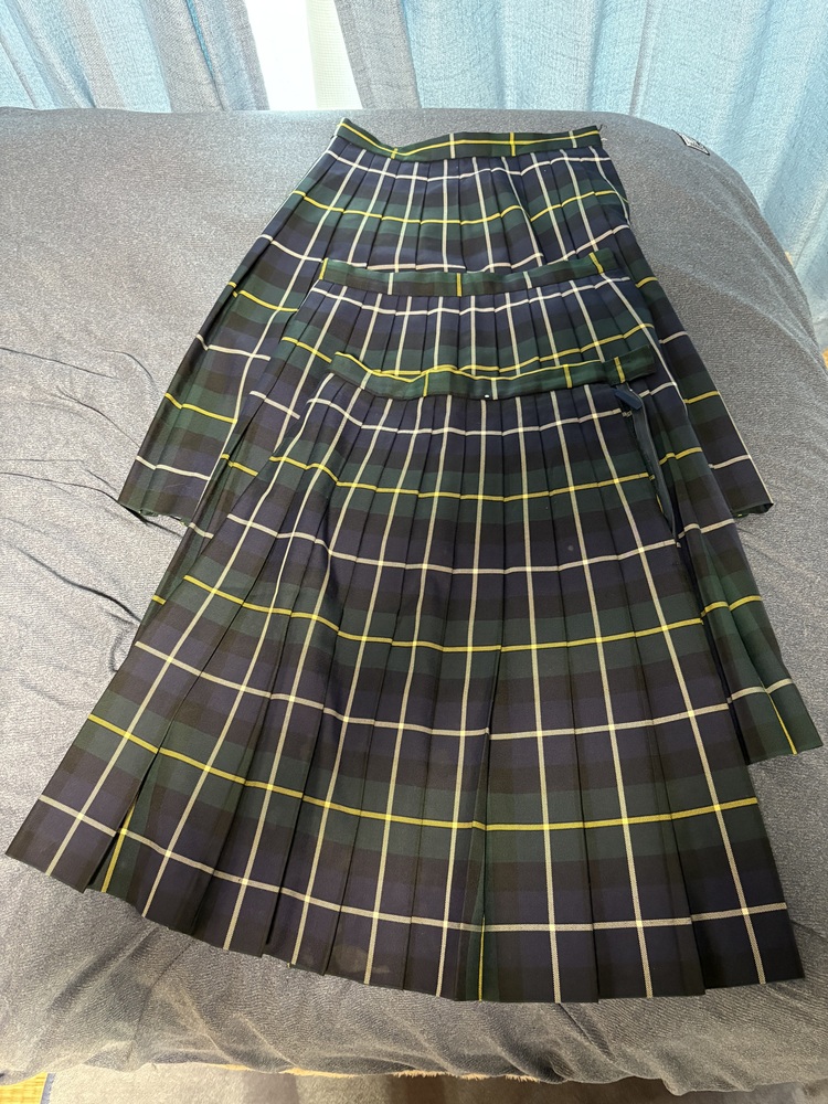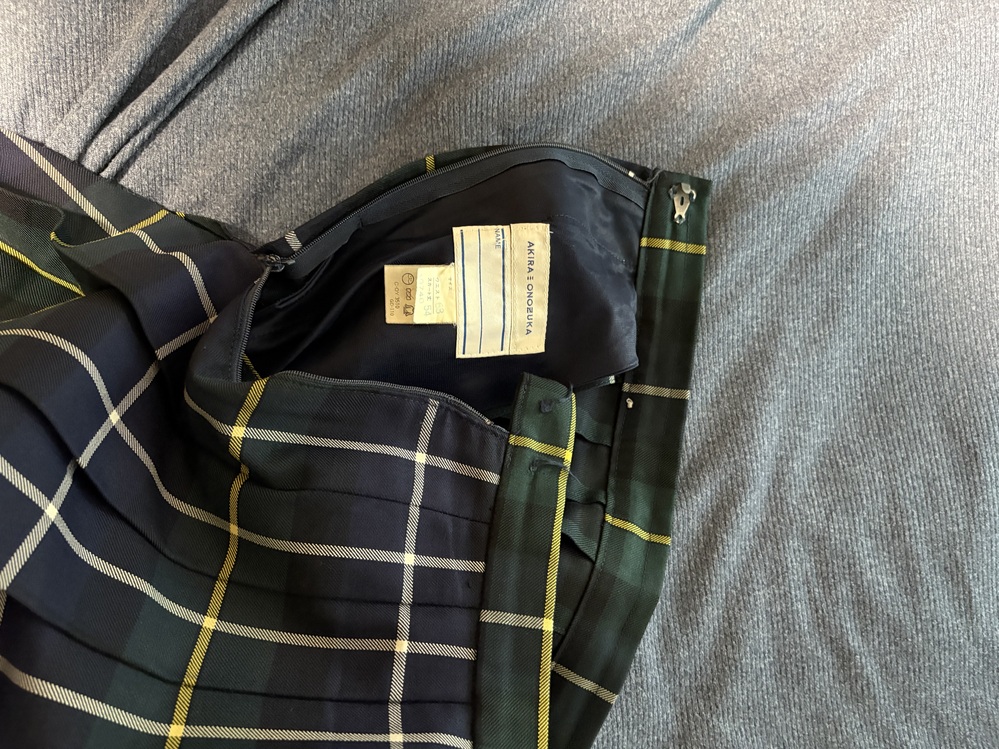 同柄チェックスカート3枚セットになります。 サイズはタグでウエストは 3枚共63cmです。 着丈はベルト含みで 64cmになります。 この内、2枚はそれぞれ フックの片方が欠損してます。 他、目立った傷、汚れは ありませんが見落としが あるかもしれませんので 何かありましたらご入札前にご質問下さい。宜しくお願い致します。 |
