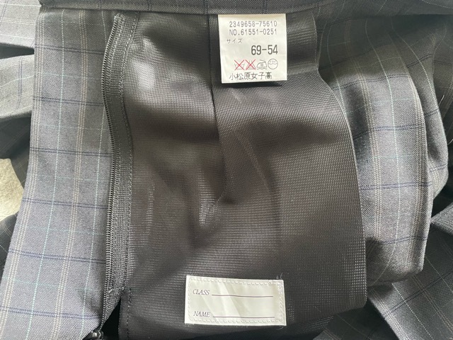 旧・現行・季節不明 実寸サイズ ウエスト 約69センチ ベルト下丈 約54センチ 白石麻衣が在籍していたことで有名な高校の制服で、ネットにある制服モデルの画像から、その世代のものかと思われます。 |