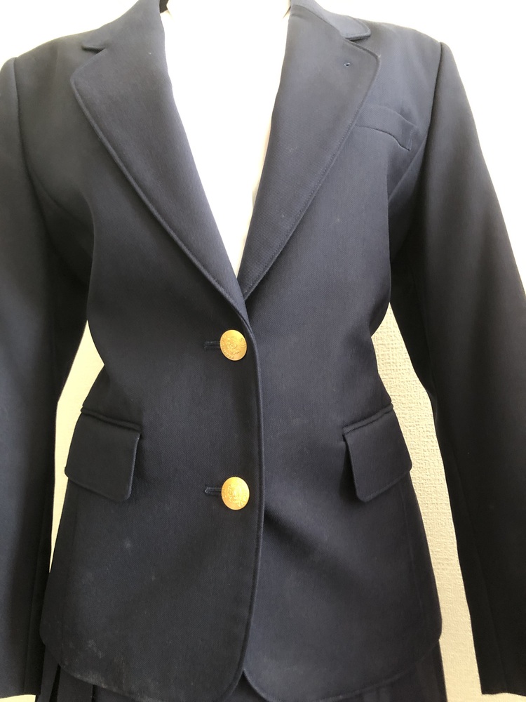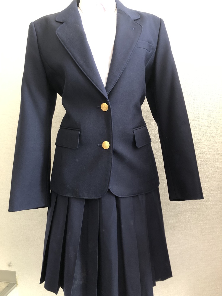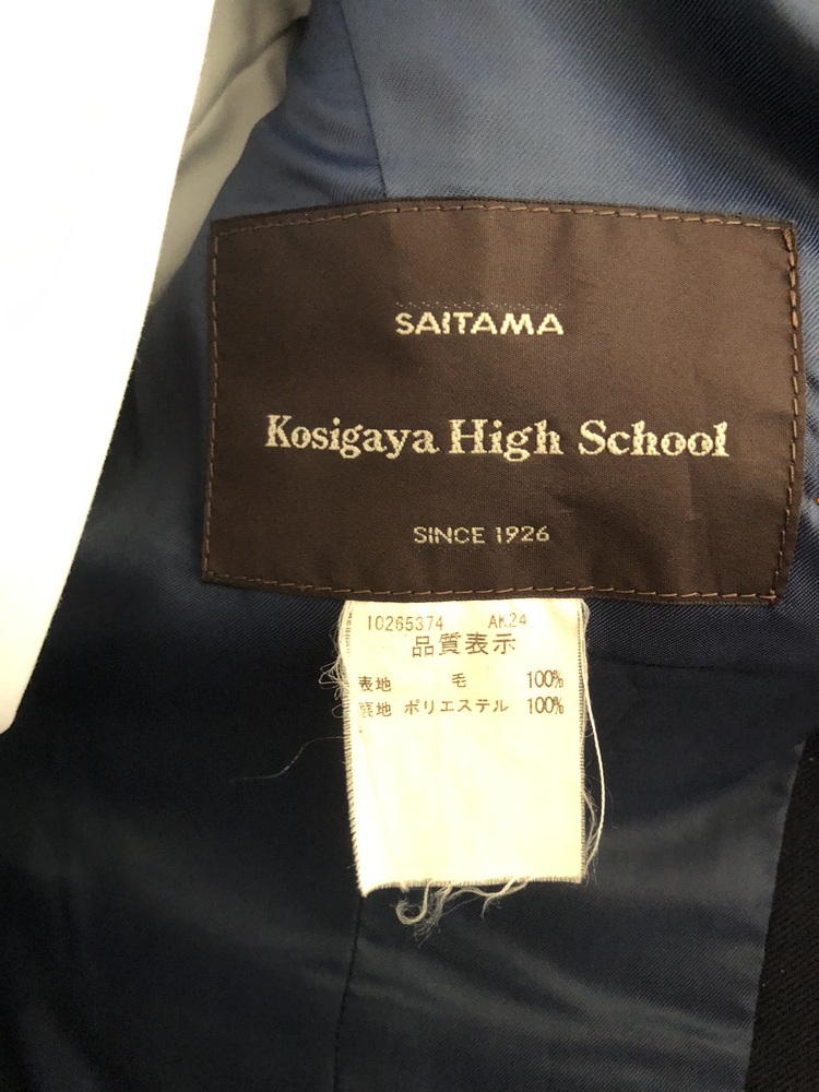 埼玉県立越谷高等学校女子制服です。ジャケットサイズ160A、スカートウエスト66p、丈は少し短めの50pです。スカートは夏用でウエスト部分にマークが入っています。3年間着用されていたものなので多少使用感あります |