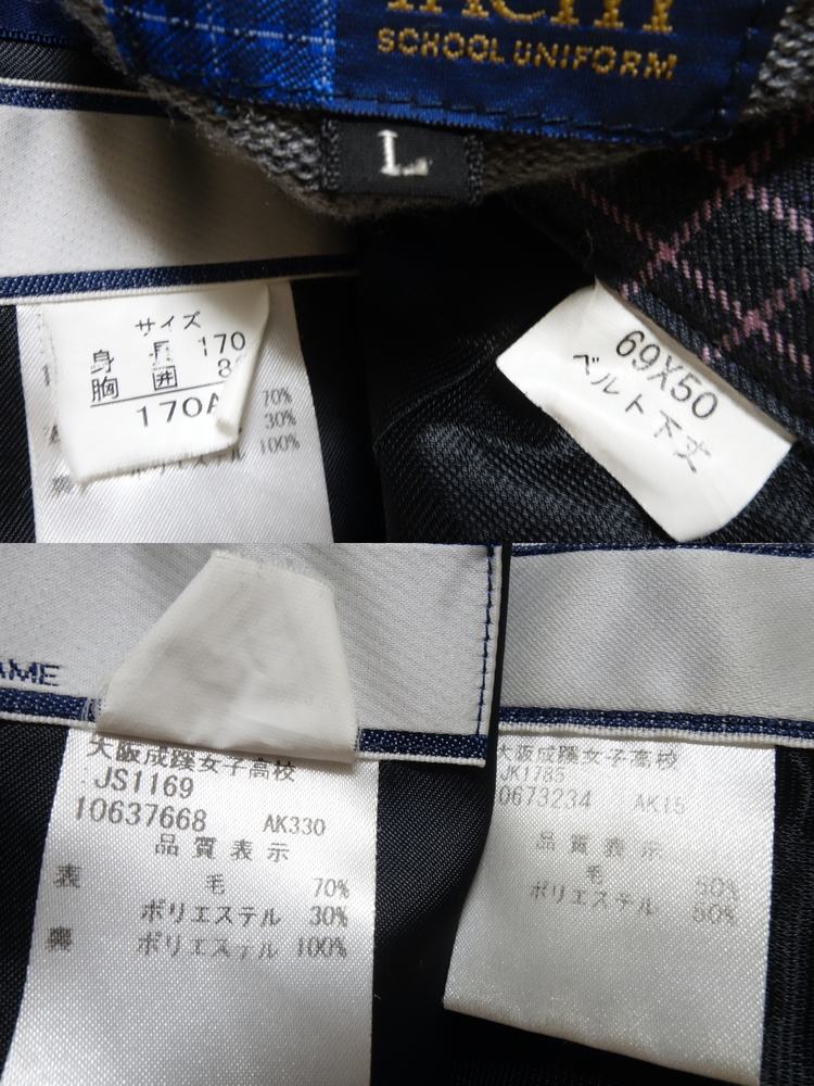 ★ご覧いただきありがとうございます★ 633◆大阪成蹊女子高校◆濃灰ブレザー&チェックスカート(冬)指定セーター◆170A W69 ☆専門業者のクリーニング済です(ドライクリーニング又は温水洗いですべて除菌加工済)☆ ☆清潔な状態の物をお送り致します☆ ※状態:スカートのウエスト前側にダメージがございます(画像でご確認ください) サイズ等は下記をご参照下さい。 〈ブレザー〉 表記サイズ:170A 着丈:63cm 肩幅:42cm 身幅:50cm 袖丈:59cm 素材:毛70% ポリエステル30% 〈セーター〉 表記サイズ:L 着丈:57cm 肩幅:45cm 身幅:52cm 袖丈:59cm 素材:アクリル70% 毛30% (スカート)冬 表記サイズ:69-50 ウエスト:69cm 丈:50cm ヒダ数:18 アジャスター:あり 素材:毛50% ポリエステル50% ※素人採寸になりますので多少の誤差はご容赦下さいませ。 ☆入札をお待ちしております♪ 【お支払いについて】 ・三井住友銀行(お振込み) ・「落札額+送料」をお振込みください。 ・お支払は3日以内にてお願い致します。 ※ご落札後3日以内に取引連絡及びご入金をお願い致します。3日経過後、何も連絡がない場合は落札者都合でキャンセルさせて頂きます。新規の方は24時間以内に連絡及びご入金がない場合は取り消しさせて頂きます。こちらからは催促の連絡は致しません。ご了承くださいませ。 【発送について】 ・兵庫県からの発送になります(ダンボール箱) ・ゆうパック:全国一律850円(60〜120サイズ) ・郵便局留め出来ます。ご希望の郵便局をご連絡ください。 ・120サイズのダンボール箱に収まる数量でしたら同梱可能です。 ・14時までにご入金の確認が出来ましたら当日発送致します。 ・品名は特にご指定がなければ「衣類」で発送いたします。 ・お取り置き、同梱発送可能です。お気軽にお申しつけ下さい。 ・お取り置きは最初の落札日より3日間まで承ります。 ※毎週木曜・日曜は発送業務をお休みさせて頂きますのでご了承ください。 |