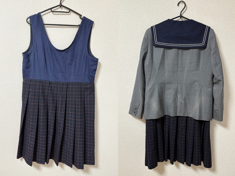 ◇◆出品内容◇◆ ・セーラーブレザー 肩幅42 身幅53 着丈61 袖丈57 ・ジャンパースカート 身幅52 ウエスト90 総丈95 以上2点です。 ※素人採寸のため、多少の誤差はご了承ください。 ◇◆状態◇◆