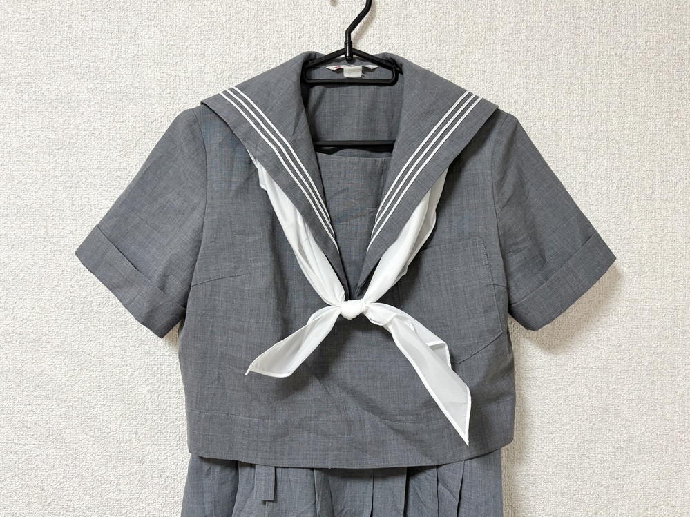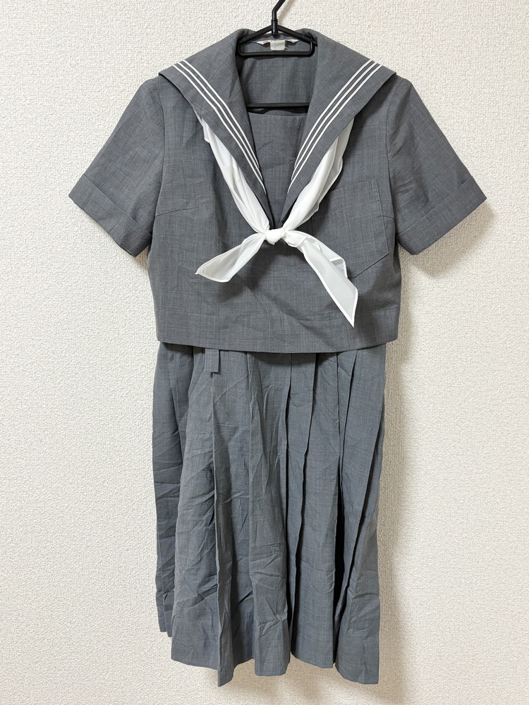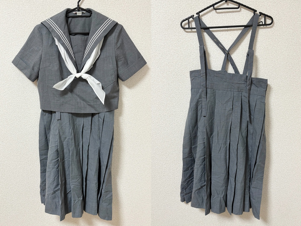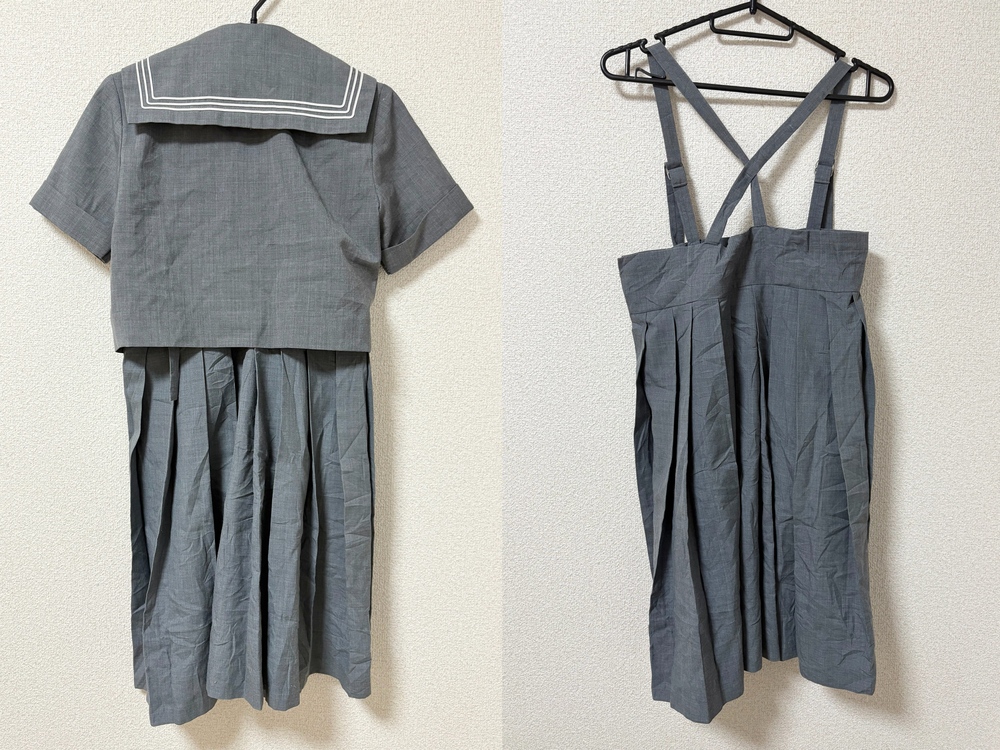 ◇◆出品内容◇◆ ・セーラー 肩幅38 身幅47 着丈41 袖丈21 ・スカート 胸当て部分からの総丈64 ウエスト72 ・スカーフ 以上3点です。 ※素人採寸のため、多少の誤差はご了承ください。 ◇◆状態◇◆