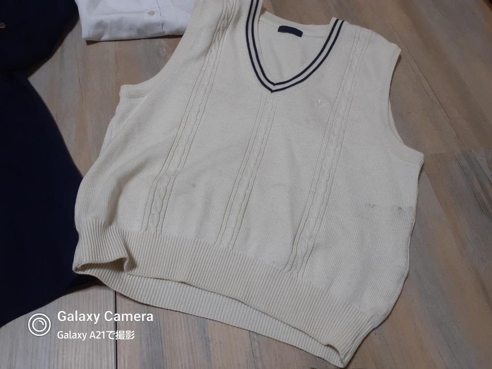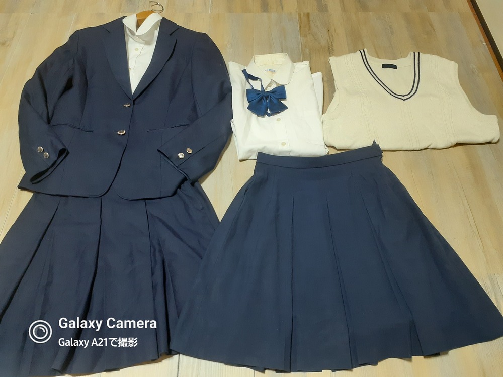 やや使用感あり ブレザー165 丈65 肩幅41 脇下身幅47 脇下〜袖先42 長袖ブラウス M ×2 丈66 肩幅42 脇下身幅49 ※襟黄ばみあり リボン ニットベスト 丈57 肩幅40 脇下身幅50 ※傷みあり スカート W56~62 丈51 スカート W60~66 丈48 |