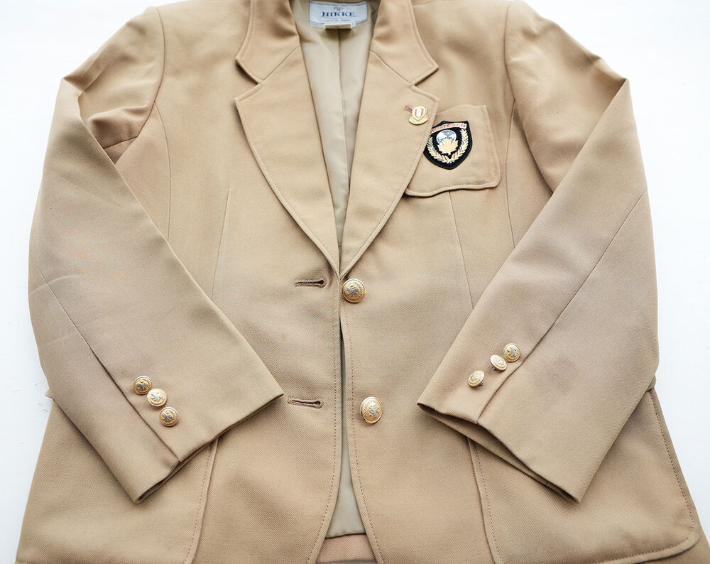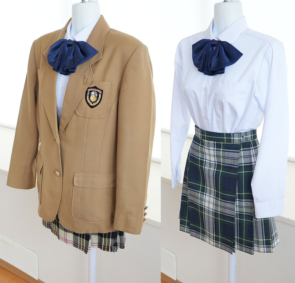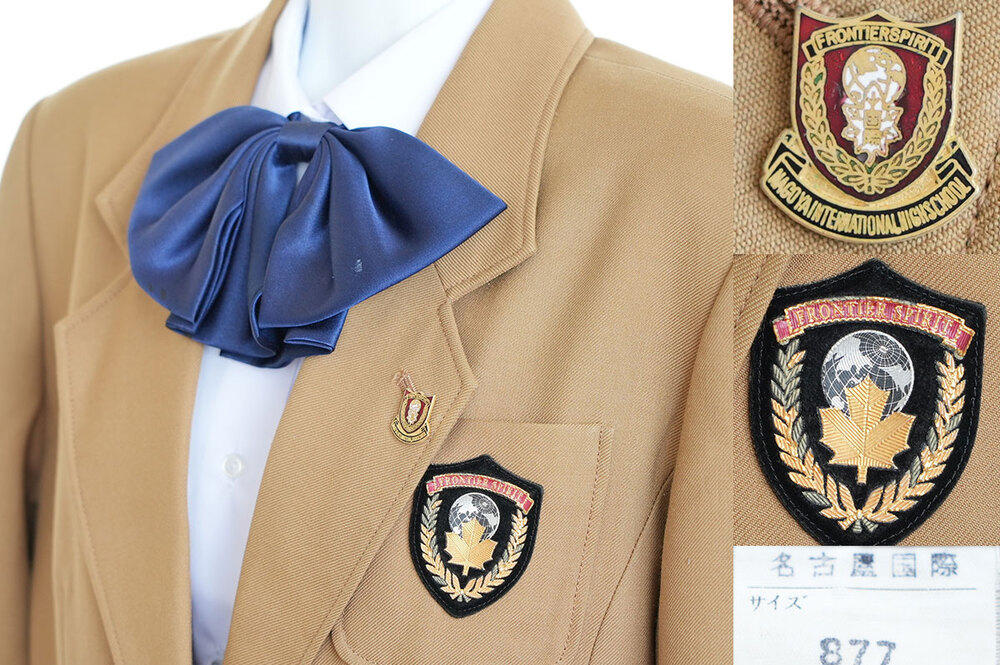 ご覧いただきありがとうございます。名古屋市昭和区の名古屋国際高校の女子制服6点セットを出品いたします。 ※スマホからは「Read More」を押し全文をご確認ください。 今回ご紹介は、名古屋商科大学の付属校で国際教育に定評がある名古屋国際高校の女子制服セットです。 本出品は1994年の現校名への改称時から着用されていた旧制服セットとなります。制服はキャメル色ブレザーで胸にはエンブレム。襟には校章バッチを付けます。スカートは巻きスカートのようなデザインで黄色のラインがアクセント。冬服は赤いラインが入り夏服は青。冬夏で柄違いとなります。 ◇出品内容◇ 1.ブレザー サイズ877 前2ボタン 袖3ボタン 肩幅43cm 着丈62cm 袖丈56cm 表地:毛70% ポリ30% 裏地:ポリ 2.冬服スカート 前箱ひだ本 プリーツ18本 3段ホック ウェスト66cm 丈40cm 表地:毛100% 裏地なし ※正面に汚れ箇所あり(写真参照) 3.夏服スカート 前箱ひだ本 プリーツ18本 3段ホック ウェスト66cm 丈40cm 表地:毛50% ポリ50% 裏地なし ※正面に汚れ箇所あり(写真参照) 4.スクールブラウス長袖 サイズ155 ポリ65% 綿35% サービス品 5.指定リボン 6.校章バッチ 以上6点。総合評価(生地の状態)は10点満点で7点です。アイテム毎に特記事項は記載していますので御覧ください(未記載の場合は問題なしの良品)。 卒業生様から丁寧な買い取りをおこない、検品・クリーニングの上出品させていただきました。当店での撮影以外、卒業生以外は一切経由していない純粋な制服です。ご入札を心からお待ちしております。 <ご注意> ・写真に写っているものが全てです。内容は写真が優先です。不明点はコメントから質問ください。 ・終了当日までに入札がない場合は出品を取り消すことがあります。購入希望は早めにご入札ください。 ・発送後に伝票番号をお送りします。荷物追跡、郵便局留め可能です。 ・私の新規出品をメールでお知らせします⇒登録\\する |