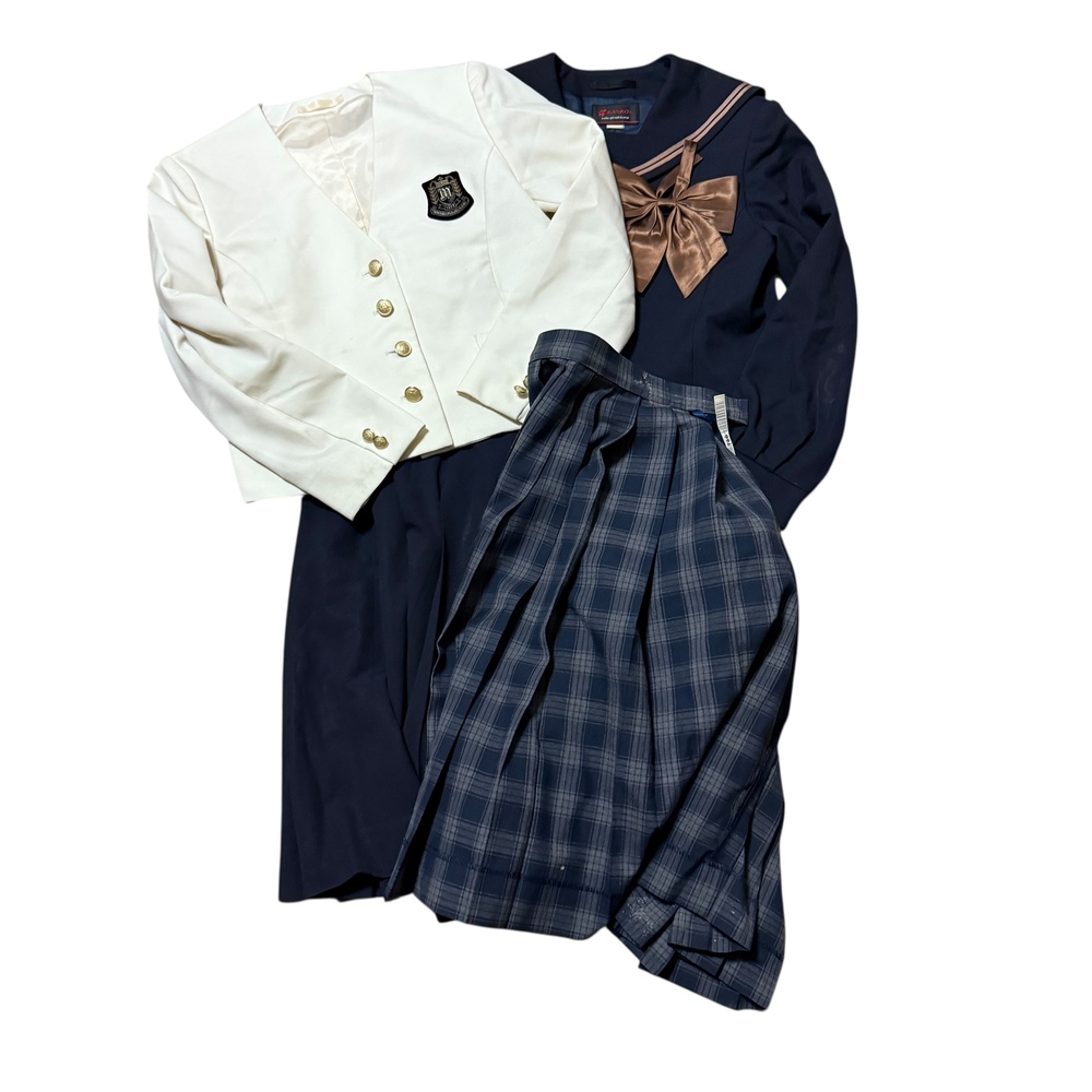 新規の方の入札で落札後、御連絡が一切ないケースが非常に多いので新規の方は入札しないでください。 新規の方、ご入札の際、必ず御連絡下さい。 それ以外の新規の方の入札は削除させて頂きます。 最近、御連絡無い方が多いので御理解の程よろしくお願い申し上げます。 画像で判断が難しい場合は質問にて御連絡頂きますと幸いです。 スカートは総丈のサイズを記載しております。 また御返品等は承れません。 同梱は可能です。 また郵便局留めにも対応させて頂いております。 ★岡山県立岡山南高等学校の制服です。 ホワイトブレザー、ネイビーセーラージャケット、リボン、スカート2点の合計5点です。 ★ブランド KANKO ★状態 ホワイトのジャケットのフロントと袖に少しだけ汚れ、セーラージャケットに少しテカリが御座いますが全体的に綺麗なコンディションです。 ★サイズ ・ホワイトジャケット 160A 身幅 約 48p 着丈 約 48p 肩幅 約 39p 袖丈 約 56p ・ネイビー セーラージャケット 身幅 約 47p 着丈 約 45p 肩幅 約 39p 袖丈 約 55p ・スカート チェック 無地 ウエスト 約 69p 約63p 総丈 約 57p 約54p |