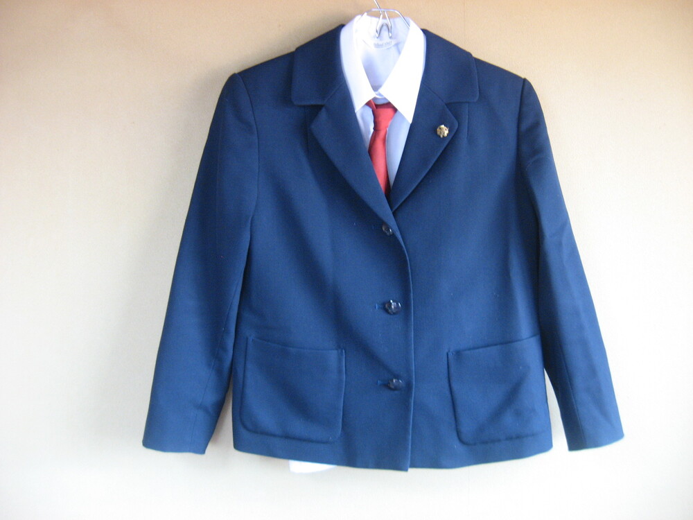 冬服サイズ ブレザー 肩幅42cm 着丈54cm ブラウス L スカート(アジャスター型ホックです)ウエスト66cm 丈56cm 夏服サイズ ブラウス L スカート(アジャスター型ホックです)ウエスト66cm 丈56cm 付属品 校章 指定ネクタイ |