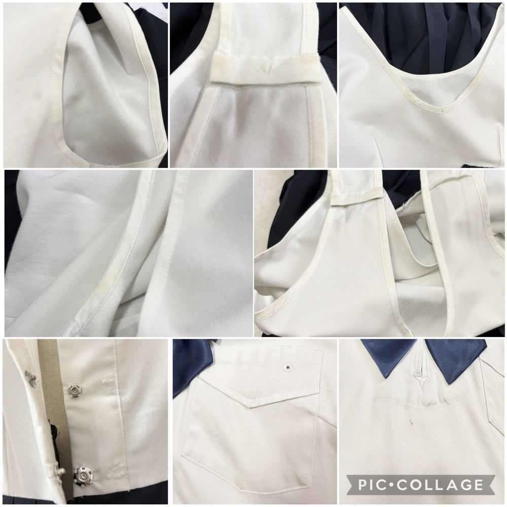 ※初めに※ こちらの商品に関しましては、直近3ヶ月以内に落札者都合によるキャンセルがある方の入札はご遠慮下さいm(_ _)m 新規の方は必ず購入意思の有無のコメントをお願い致します。 取引に不安がある方より入札があった場合、予告無く入札削除致しますのでご了承ください。 長くなり申し訳ございませんm(_ _)m 当方の仕事(不定休)の関係で入金確認に2、3日、発送に1週間くらいかかりますので、その点をご了承くださいm(_ _)m -----商品説明等----- 福岡県 精華女子高校 旧 夏服 セーラー 精華女子高校の旧セーラー服上下になります。 大きいサイズですのでメンズの方やマシュマロボディの方にも可愛くご着用頂けるかと思います(*^^*) 全て平置きでの採寸になります。 身幅は2倍でお考えください。 素人の採寸ですので、多少の誤差はお許しくださいm(_ _)m 【夏服セーラー】 5 着丈41.5cm 肩幅42.5cm 身幅51.5cm 袖丈21.5cm ホワイトボディに濃紺襟、白の3本ラインのセーラー服です。 かぶりタイプ、サイドファスナーです。 こちら着用感強めです。 全体的に毛玉や毛羽立ちあり。 所々に汚れあり。 ポケットと前側裾に薄汚れ、前側にペン汚れがあり、それがパッと見でわかりやすい汚れになります。 胸部分の留め具が無いため、スナップボタンが付いてます。 着用に困るような難はありません。 【夏服ジャンパースカート】 着丈(肩から裾まで)99.5cm 肩幅測定不可 身幅46.5cm ウエスト40.5cm ウエストから裾まで67cm ホワイトベストに濃紺のプリーツスカートのジャンパースカートです。 スカート部分は特に酷く目立つような難はありませんが、上のベスト部分に難あり。 首周り、腕周り黄ばみあり。 サイドのスナップボタンを移動した跡あり。 スカート部分テカリあり。 品質表示タグや、メーカータグを見つけきれませんが、精華女子高校の指定品(従姉妹からの委託品な為)です。 着用感強いですが、着用に困るような難はありません。 ※業者クリーニング済ですが、タグは初めから付けてもらっておりません。 【リボン】 指定リボンを紛失し、指定外のリボンになります。 ハネクトーンの紺色リボンです。 指定リボンはゴムタイプですが、こちらはスナップボタン式の為、留め具を上着に縫い付けております。 【発送】 ・レターパックプラス ・ゆうパック60サイズ 落札頂きましたら、必ずご希望の発送方法を上記よりお選び頂き、メッセージをお願い致します。 ご連絡なき場合、ゆうパックでの発送となります。 ※終了日当日の返答は出来かねますのでご了承下さい。 ご検討よろしくお願い致します(*^^*) お願いm(_ _)m 落札頂きましたら、24時間以内に取引開始をお願い致します。 諸事情により郵便局(ゆうパック等)での発送中心となります。 お振込みは送料通知より銀行営業日3日以内にお願い致します。 |